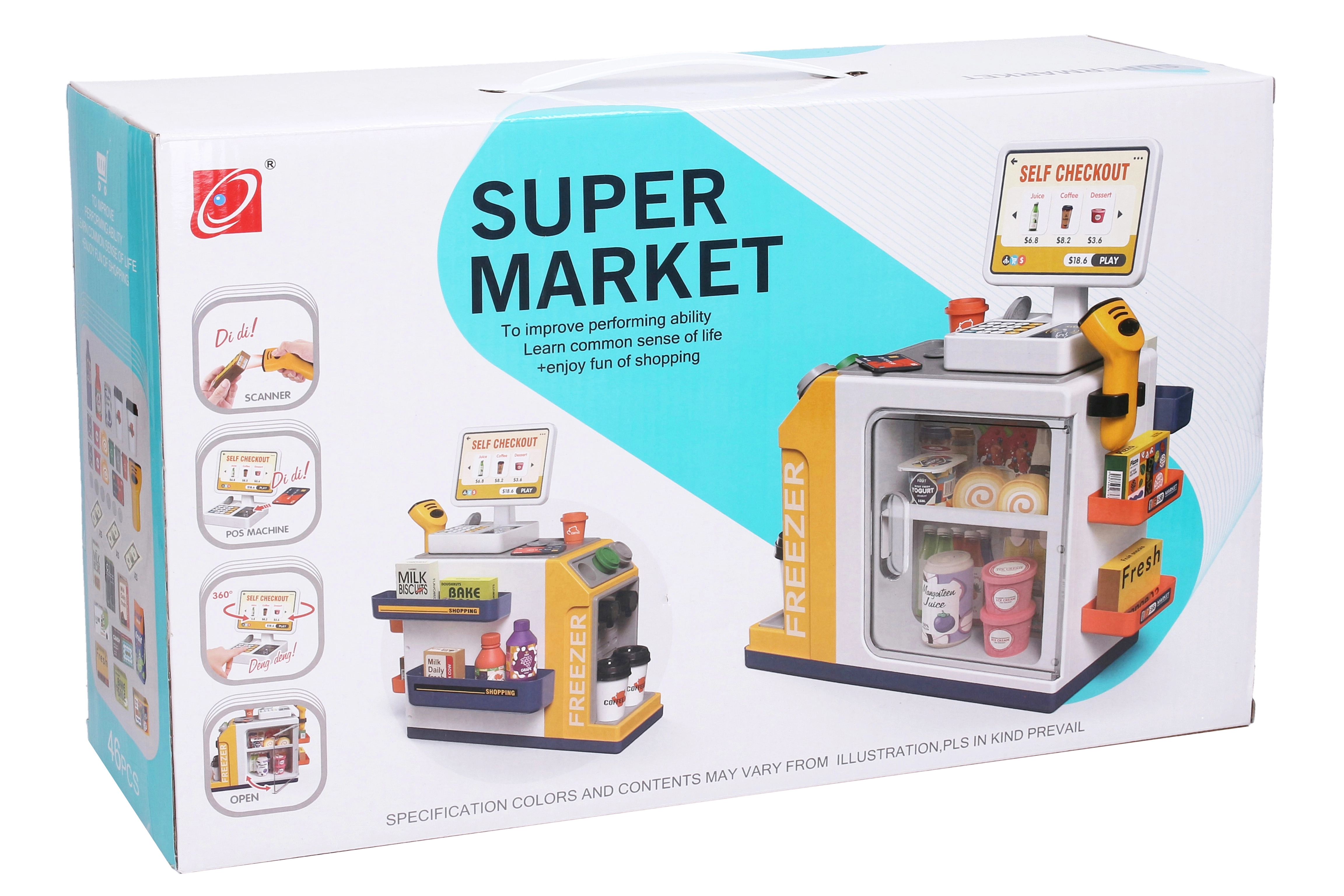 Šis supermarketų rinkinys yra puikus žaislas visiems mažiesiems apsipirkimo entuziastams. Rinkinyje yra viskas, ko tikėtumėtės tikrame supermarkete: staliukas su kasa, rankinis skaitytuvas, mokėjimo kortelė, popieriniai banknotai ir monetos. Žaidimams parduotuvę taip pat rasite kavos, sulčių, jogurtų, pieno, suši ir saldumynų imitacijas.