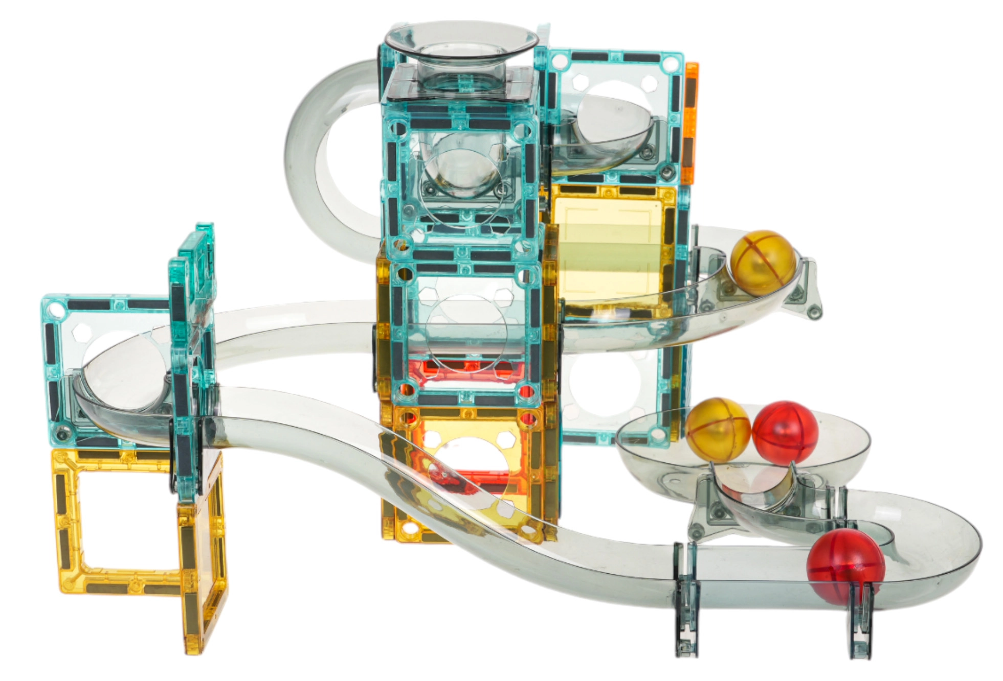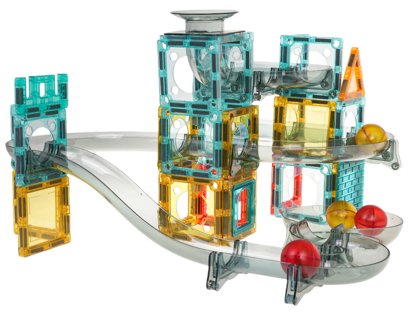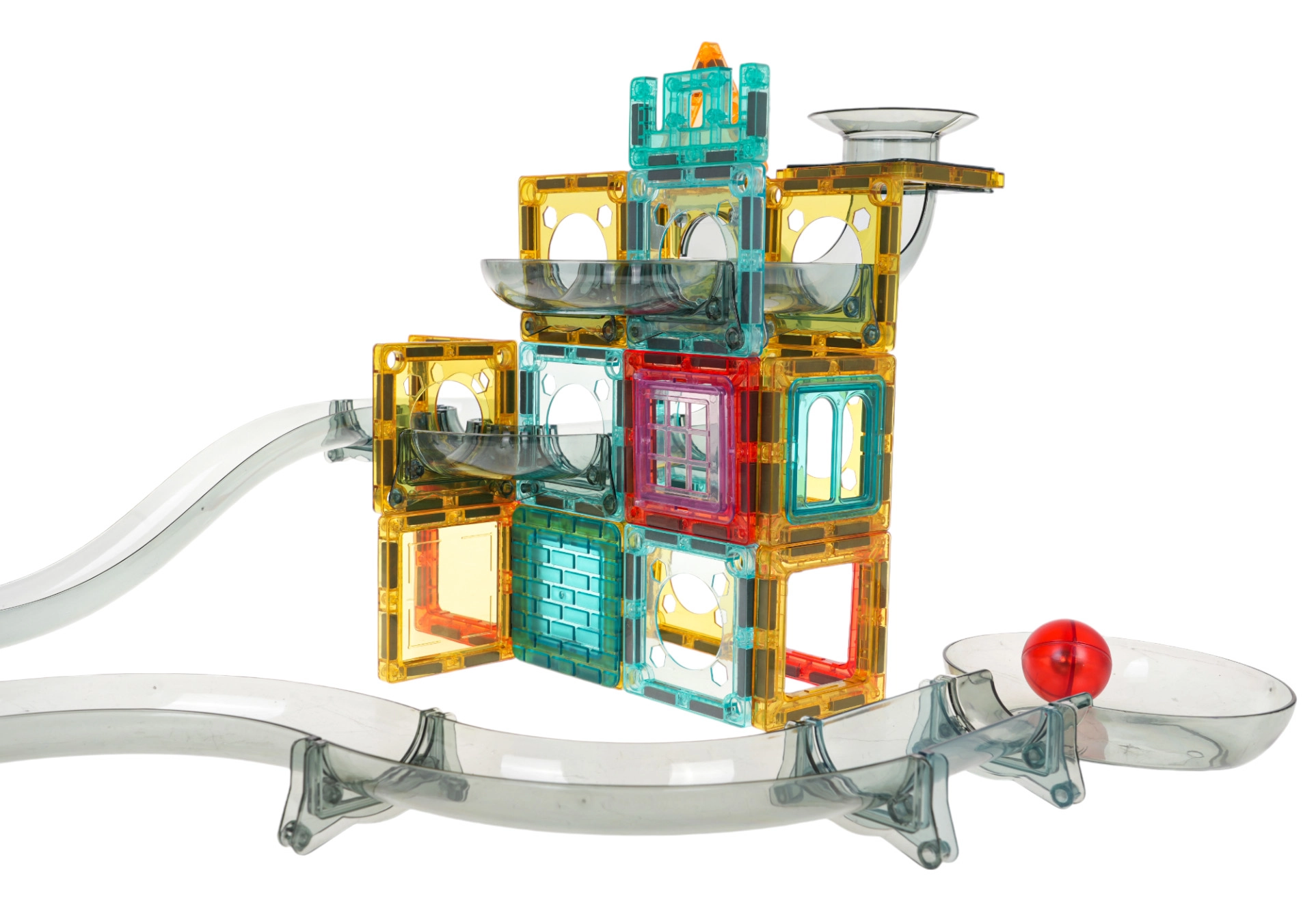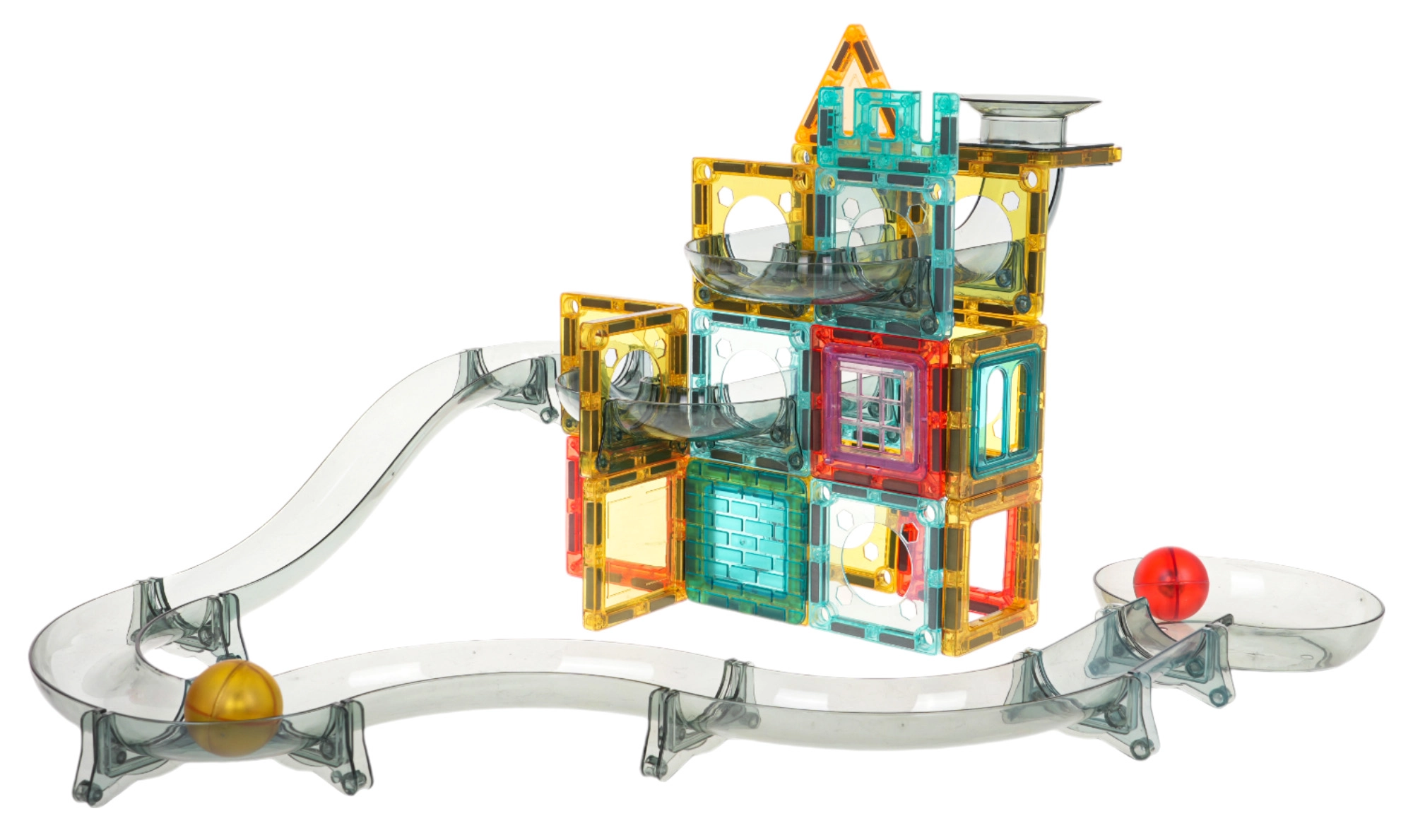 Spalvinga magnetinė konstruktorių rinkinys vaikams nuo 3 metų leidžia pastatyti savo rutuliukų trasą iš permatomų detalių. Vaikai mėgausis stebėdami, kaip rutuliukai rieda per tunelius, posūkius ir piltuvus, tuo pačiu lavindami kūrybiškumą, smulkiąją motoriką ir akių–rankų koordinaciją. Stabili konstrukcija, ryškios spalvos ir galimybė statyti pagal iliustruotą instrukciją arba pagal savo fantaziją užtikrina ilgas valandas pramogų.