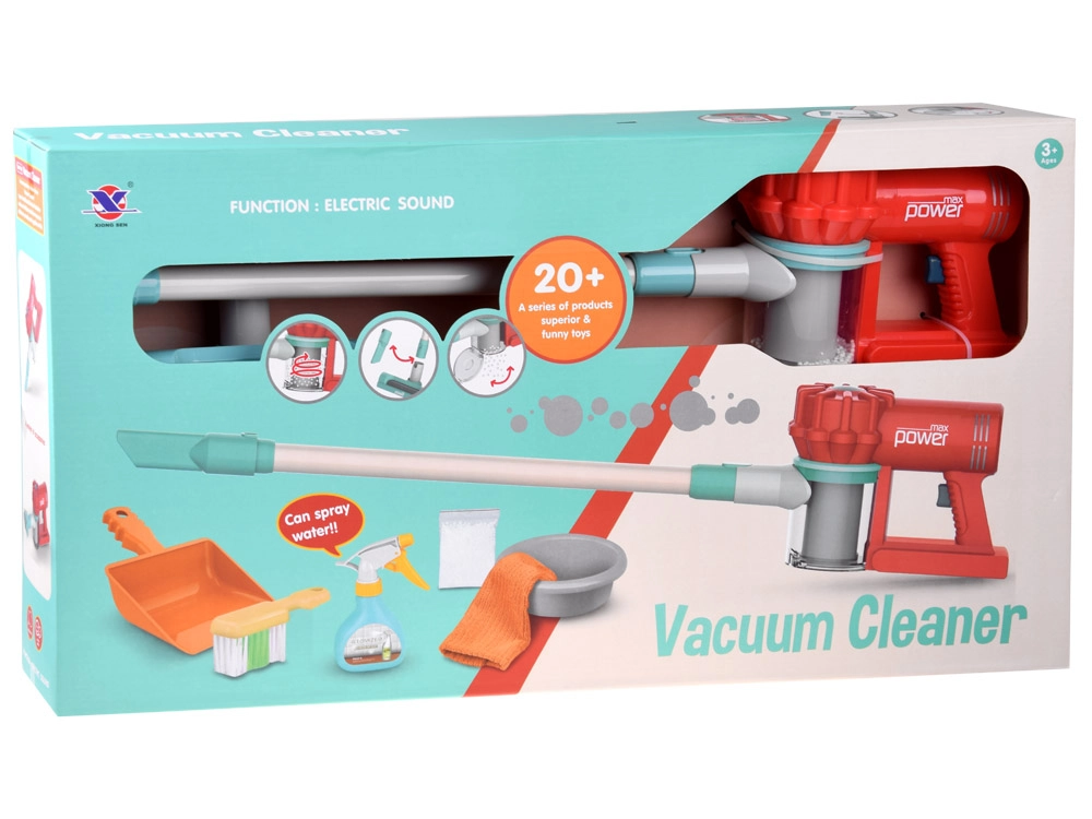 Šis vaikiškas valymo rinkinys pagamintas iš patvaraus plastiko, linksmų spalvų, puikiai tinka namų ar „viešbučio“ vaidmenų žaidimams. Siurblys, maitinamas 3× AA baterijomis (neįtrauktos), paspaudus mygtuką skleidžia realistišką garsą, o permatomoje talpoje esantys balti rutuliukai ima judėti – vaikai patiria tikro siurbimo įspūdį.