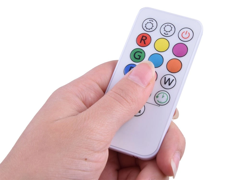 Valdykite spalvas, ryškumą ir 15/30/60 min laikmatį tiesiai iš lovos. Paprastus mygtukus lengvai supras ir vaikai, ir tėvai.