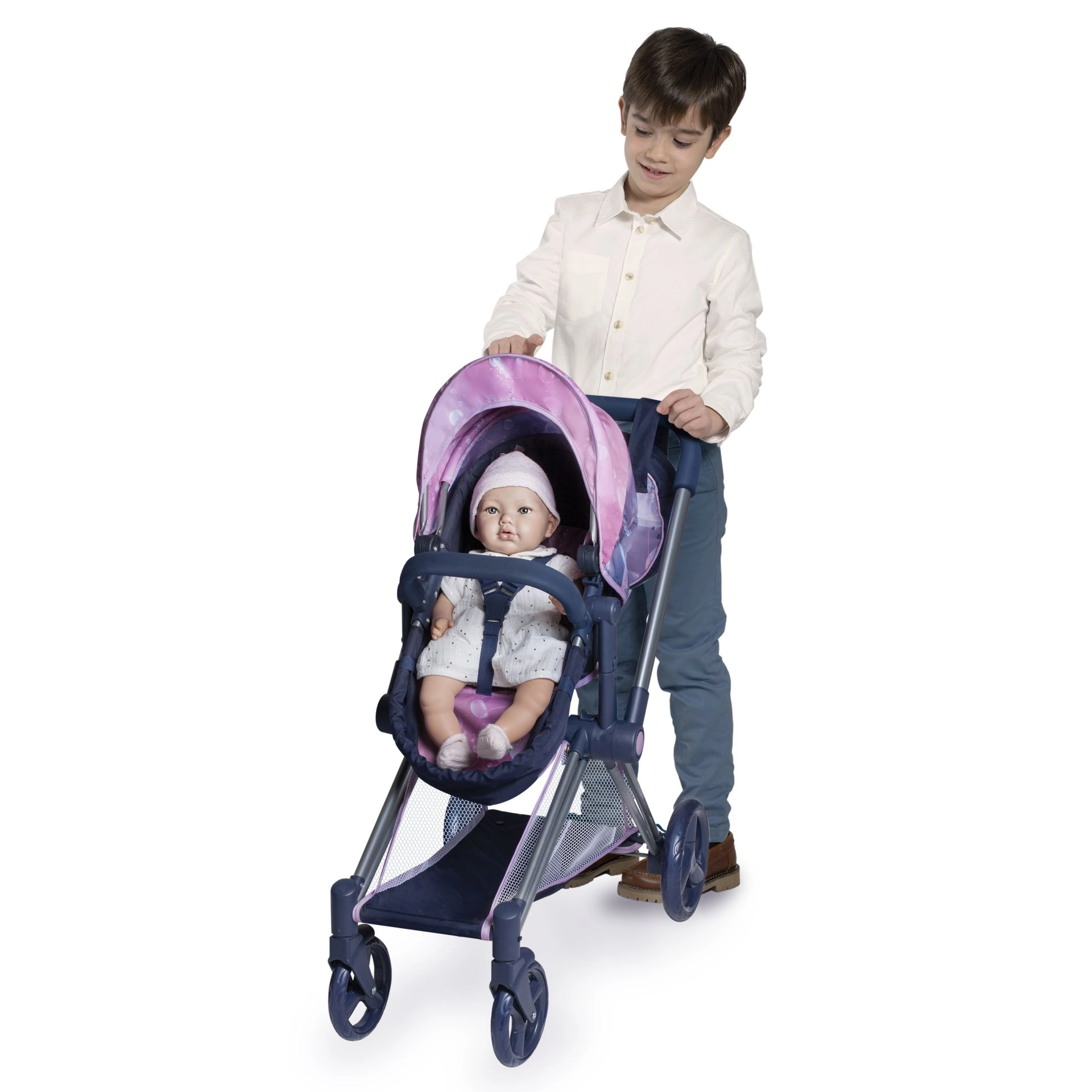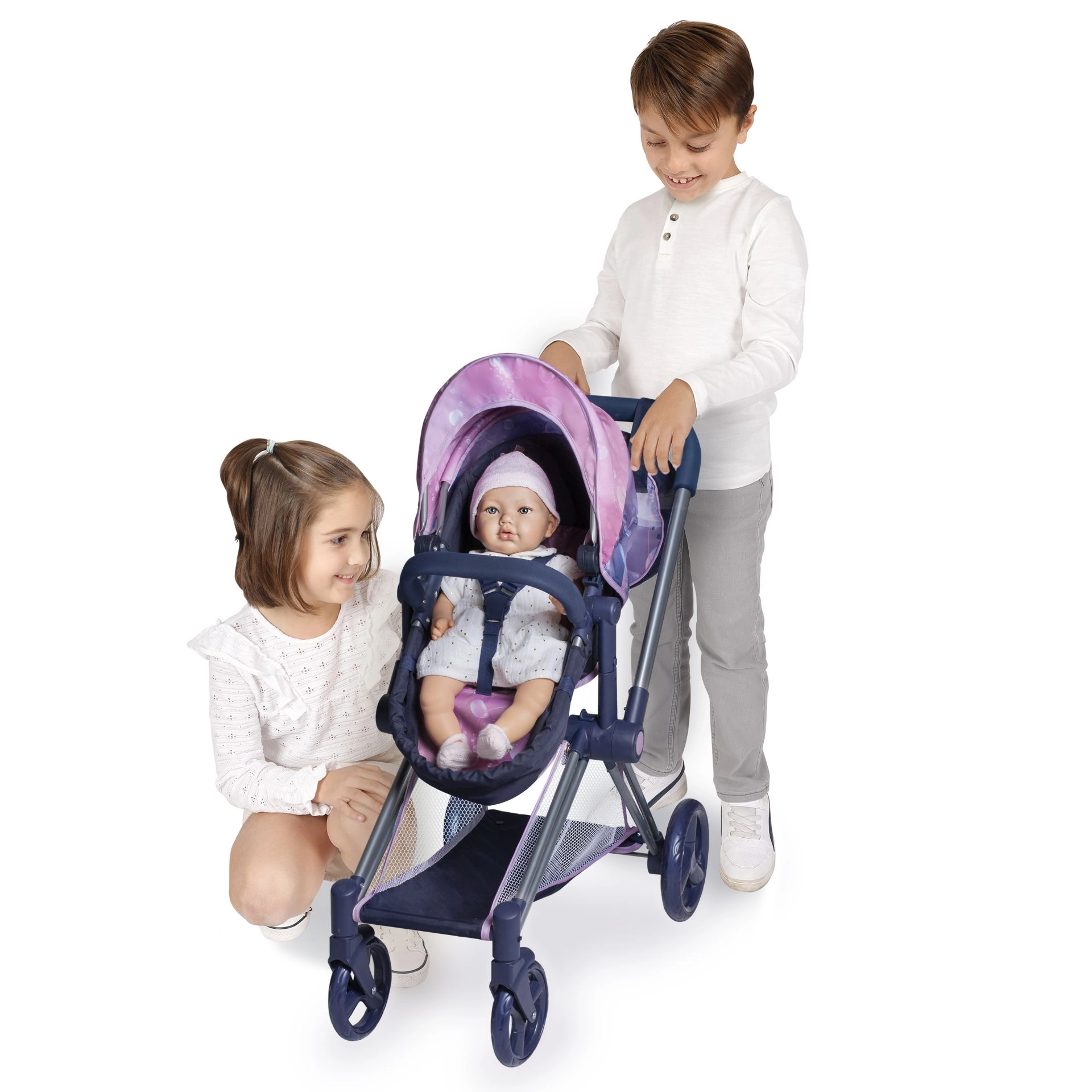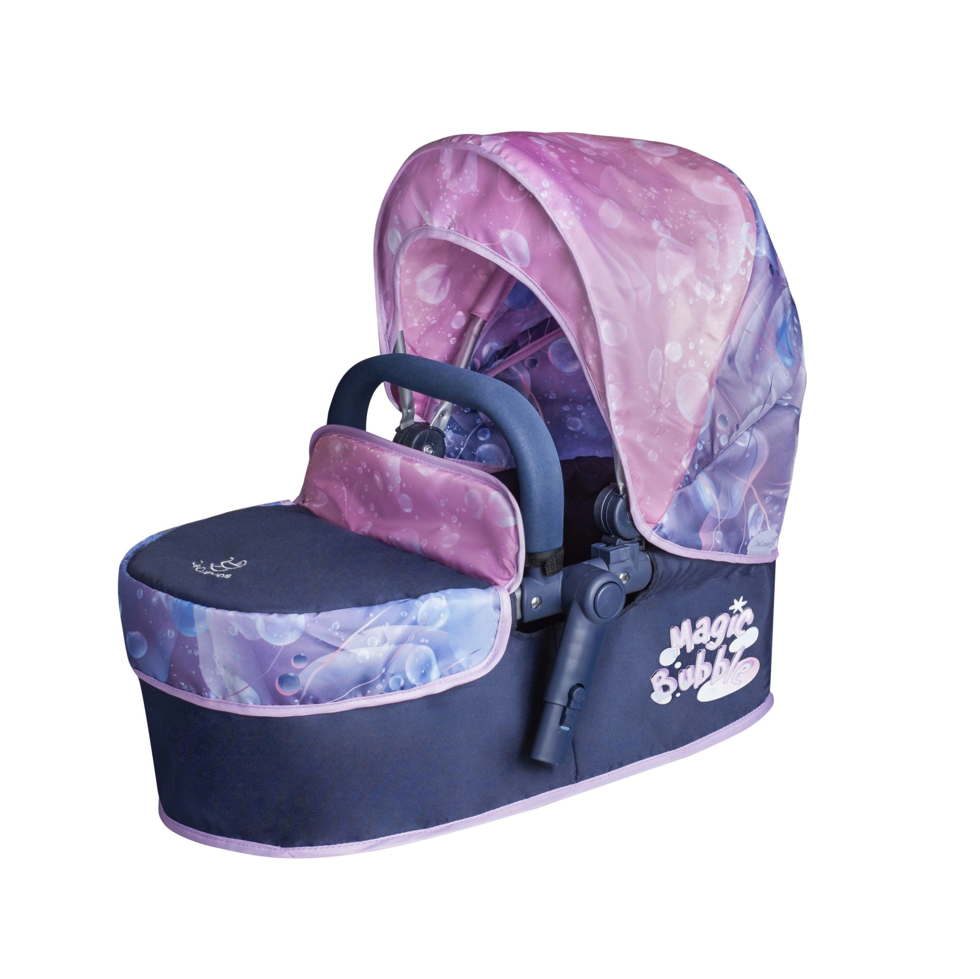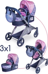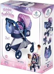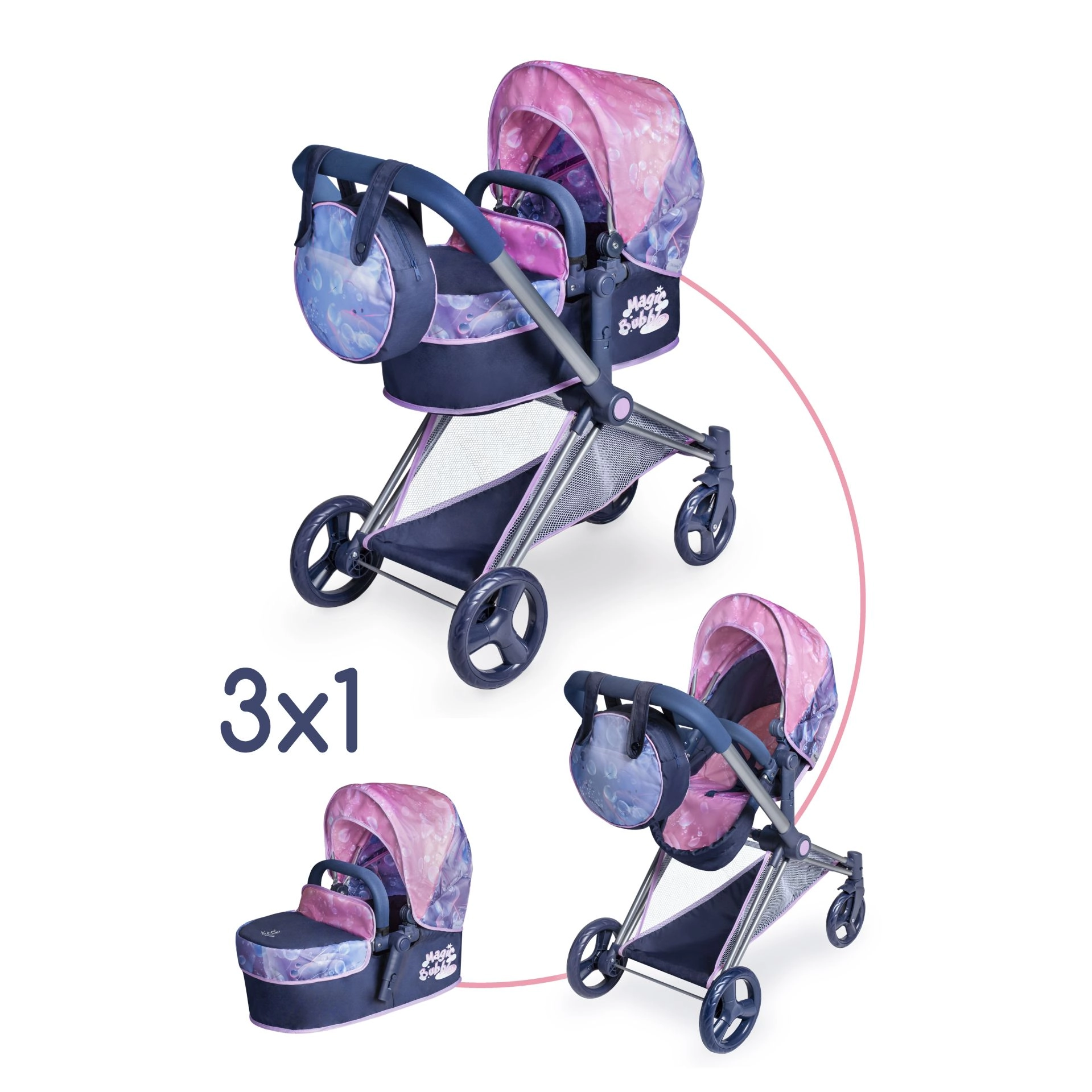 Stilingas 3 viename lėlių vežimėlis iš kolekcijos Magic Bubble sužavi realistiškumu, lengvu sulankstymu ir gausiais priedais. Siūlo nuimamą gilią lopšį, paverčiamą į sportinę sėdynę, reguliuojamą stogelį, trijų taškų diržą saugiam lėlės pritvirtinimui ir pasukamus priekinius ratukus sklandžiam važiavimui. Taip pat yra praktiškas krepšelis ir apvalus krepšys švelnaus vaivorykštės dizaino.