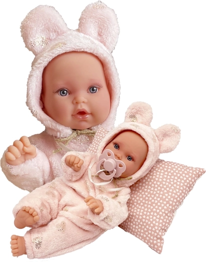 Minkštas audinio kūnas ir malonios medžiagos užtikrina patogumą žaidžiant ir užmiegant. Pasirinkti drabužėliai pagaminti iš organinės medvilnės be cheminio apdorojimo.