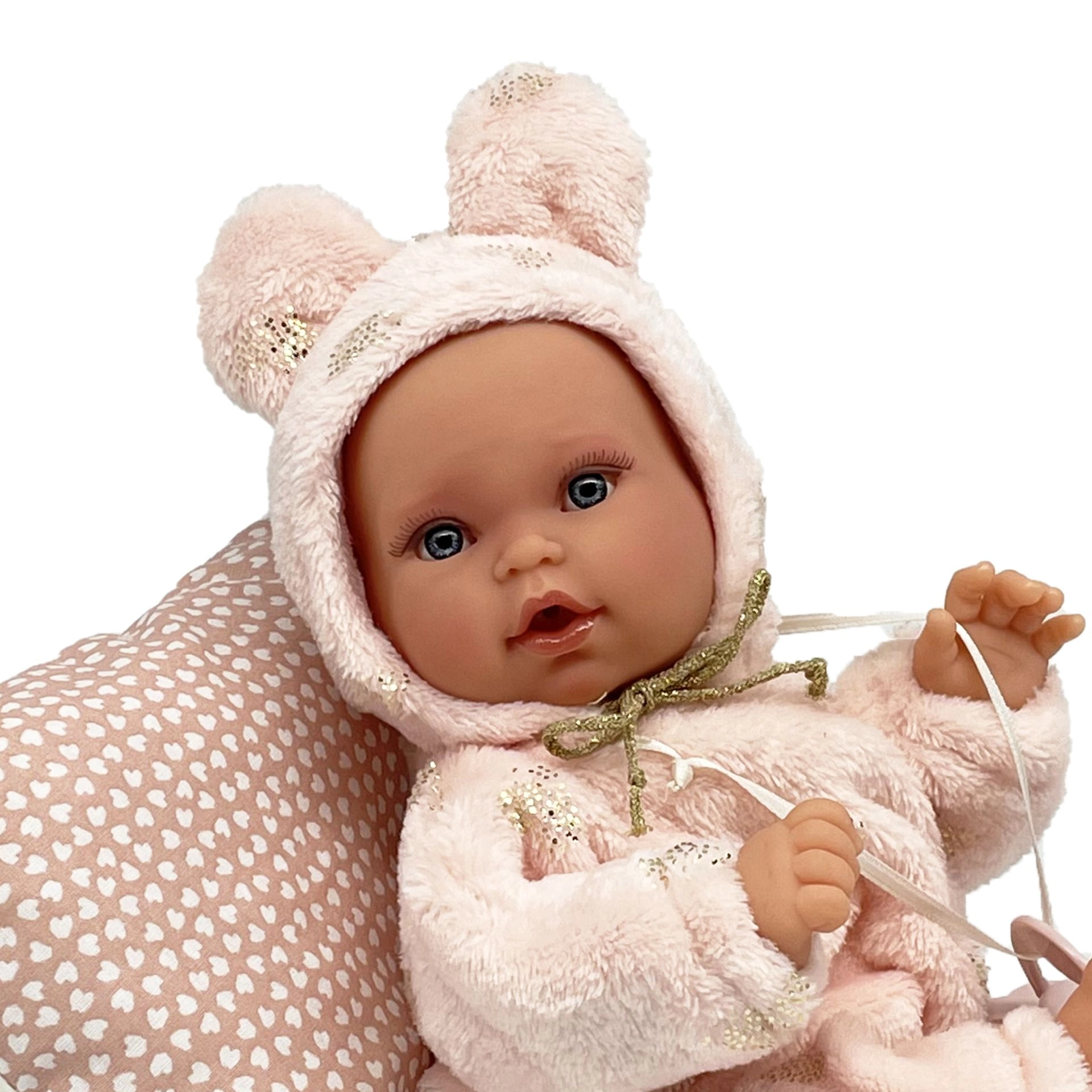 Lėlė Antonio Juan Kika – rankų darbo kūdikis, išsiskiriantis realistiškomis detalėmis, švelnia išraiška ir minkštu aprėdėliu. Vidinė atrama leidžia kūdikiui užimti natūralias pozas – gali sukryžiuoti kojytes, suglausti delnus ar gulėti kaip tikras kūdikis. Minkštas audinio kūnelis kviečia glėbesčiuotis, o vinilinės dalys užtikrina patvarumą ir detalių tikroviškumą.