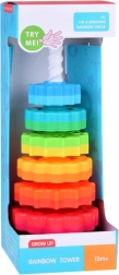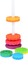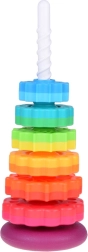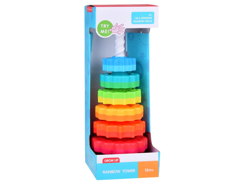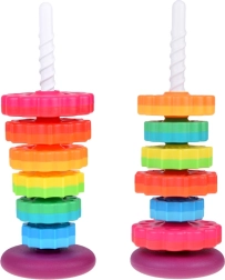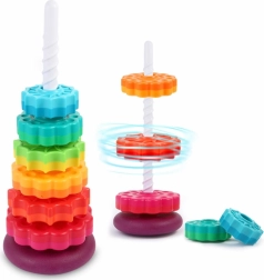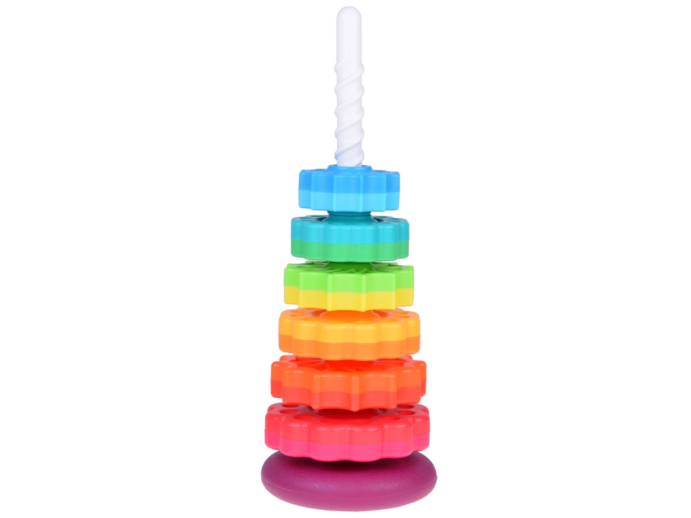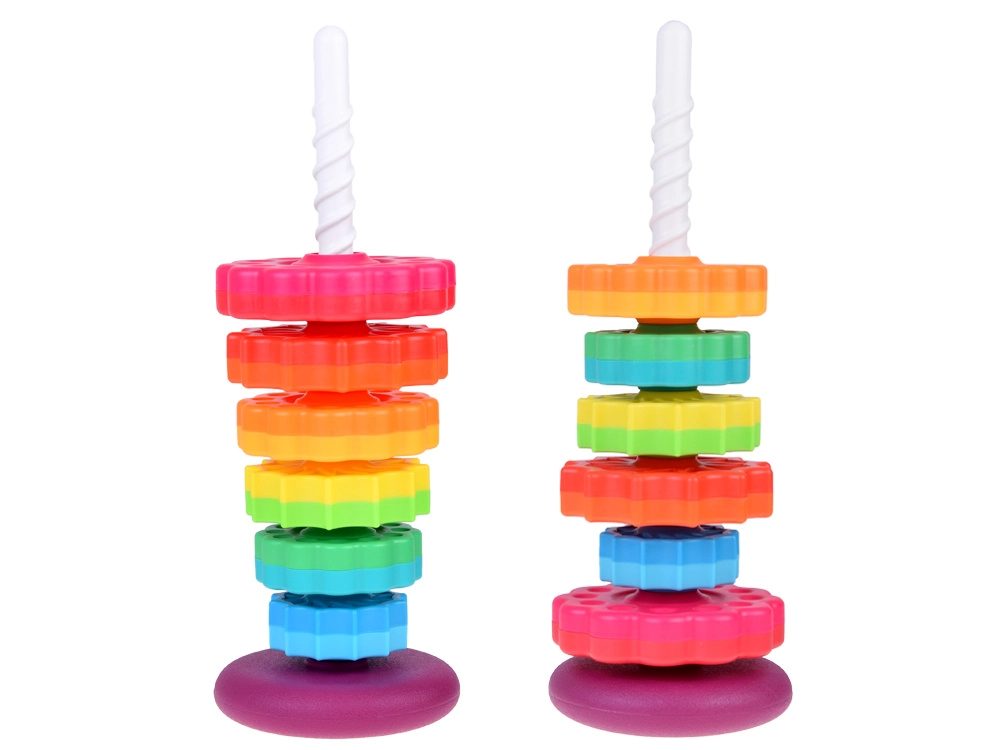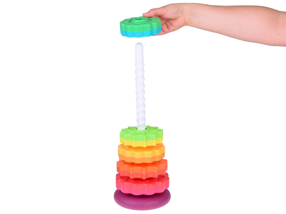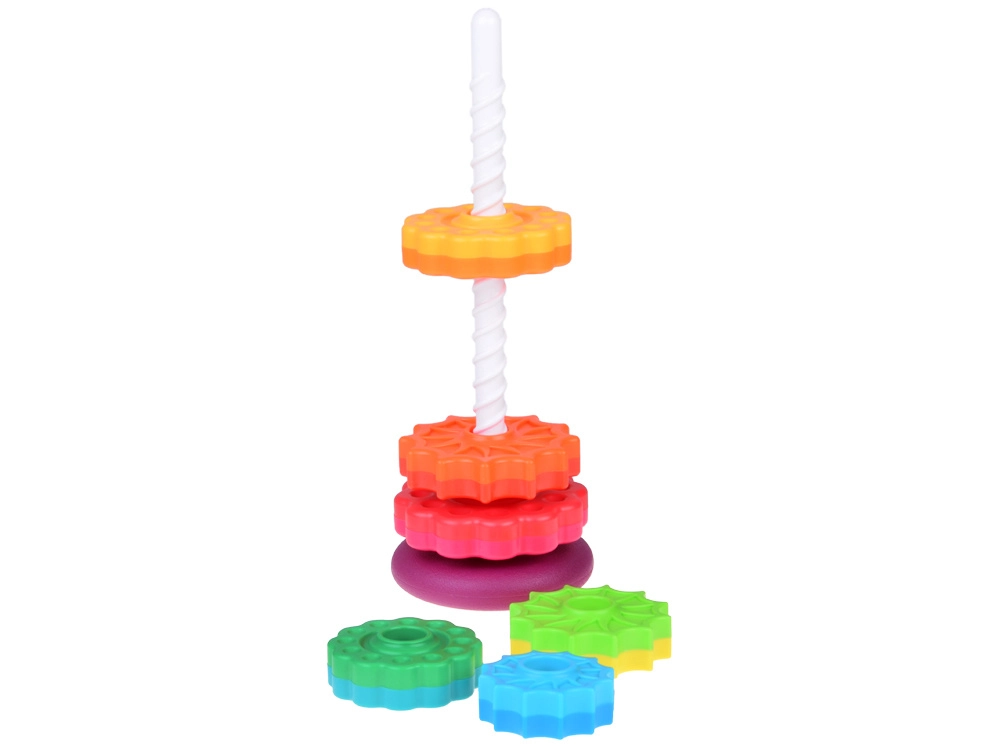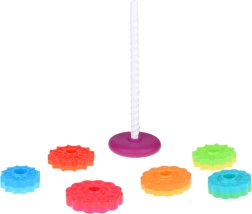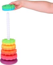 Šis spalvotas spiralinis bokštas sudomina vaikus ryškiomis spalvomis ir sklandžiu žiedų slydimu spiraliniu strypu. Žaisdami vaikai natūraliai lavina suėmimą, judesių tikslumą ir mokosi atskirti dydžius. Dėl patvaraus plastiko ir stabilios bazės žaisti saugu ir intuityvu.