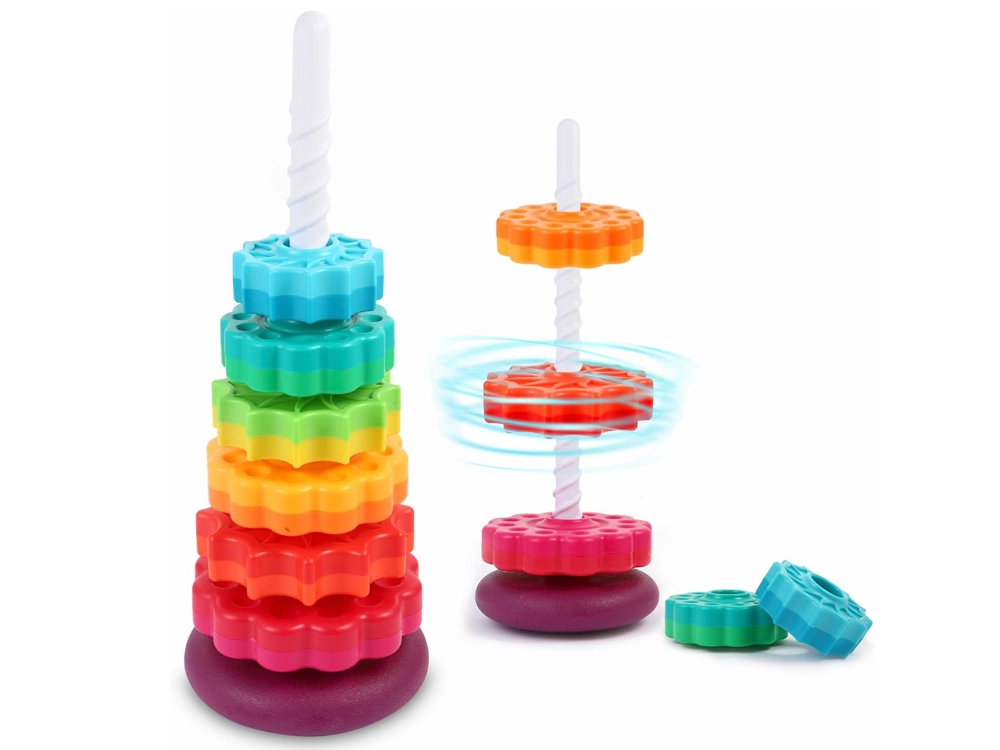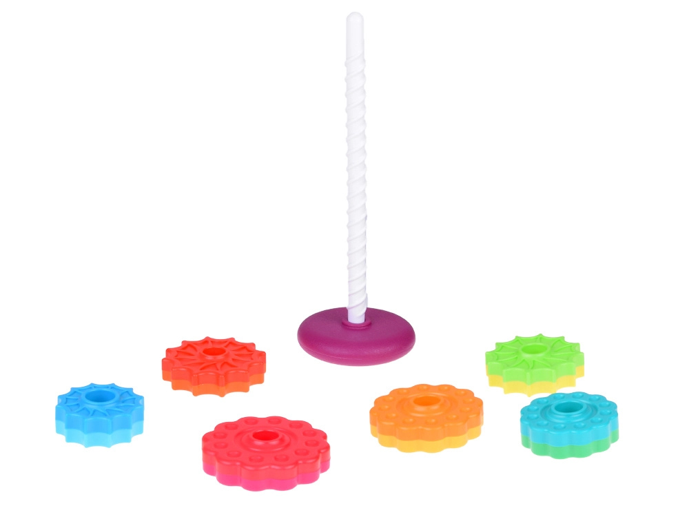 Skirtingų tekstūrų dėliojami žiedai skatina jutiminį suvokimą ir susikaupimą. Dėliojimas nuo didžiausio iki mažiausio padeda ugdyti logiką, kantrybę ir ankstyvuosius matematikos įgūdžius. Ryškios spalvos stiprina vizualinę stimulaciją ir spalvų mokymąsi.