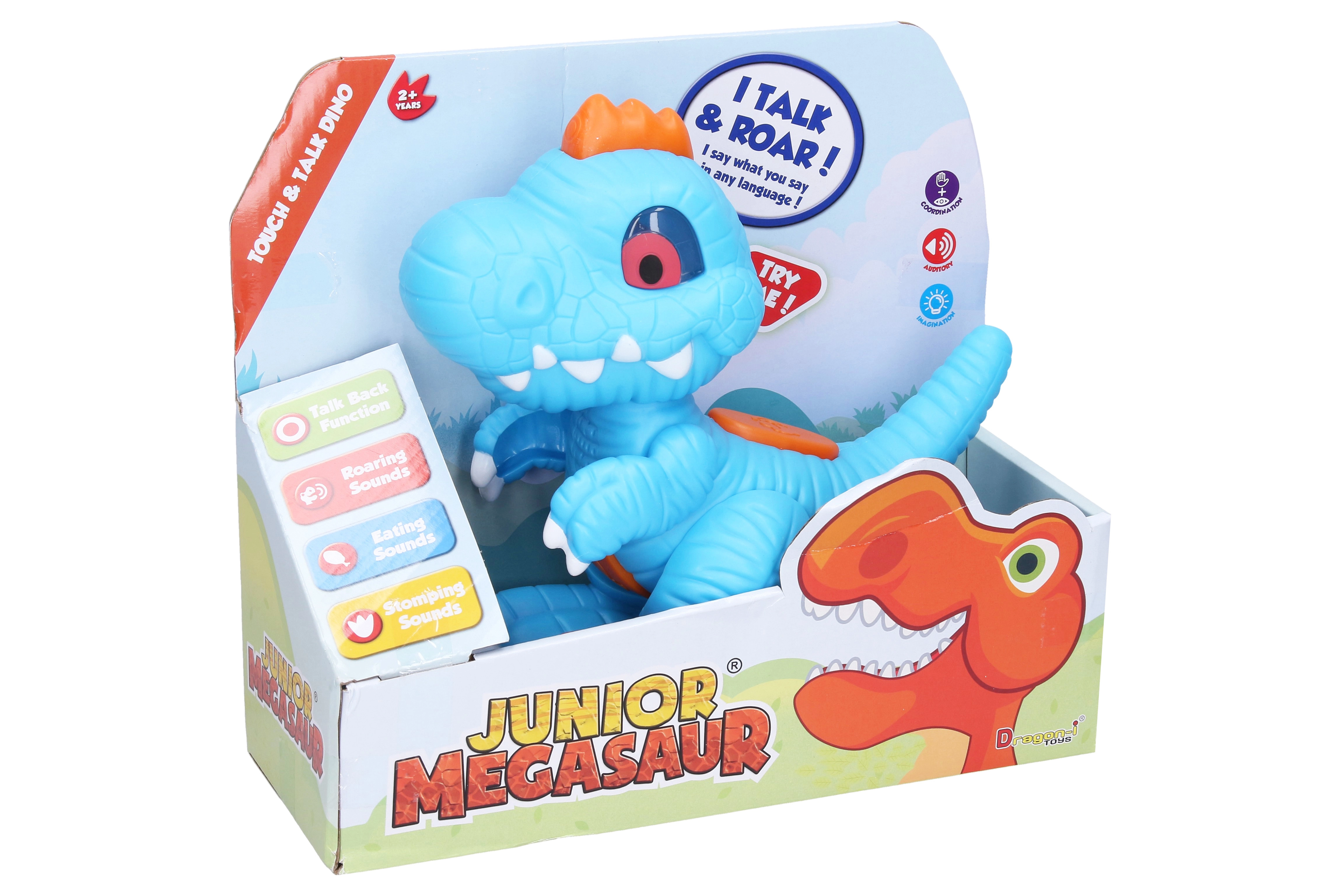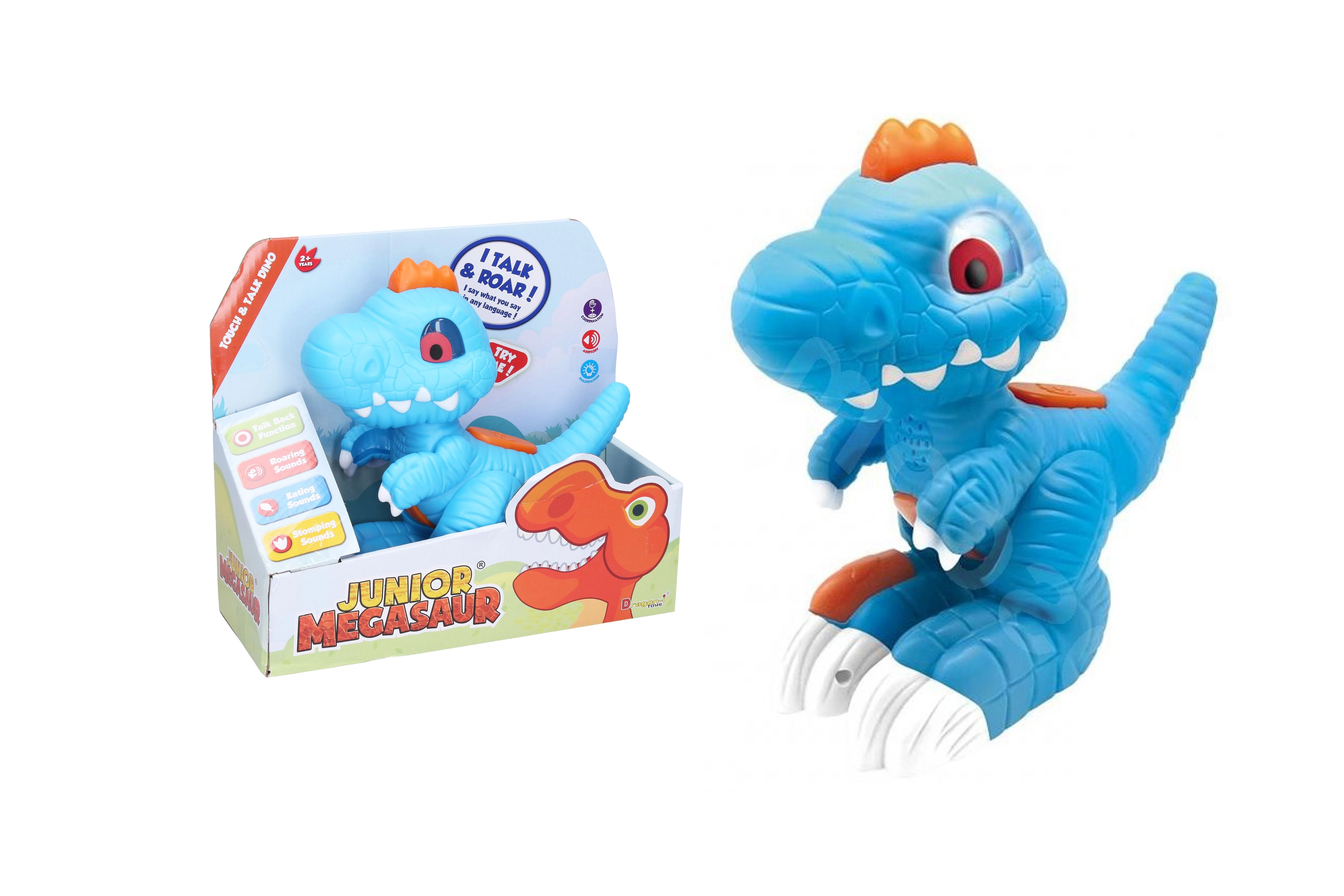 Mėgaukitės valandomis pramogų su kalbančiu dinozauru! Šis interaktyvus dinozauras skleidžia tikrovišką dinozauro riaumojimą, valgymo garsus ir dinozauro žingsnių dunksėjimą. Pagrindinė funkcija – jūsų žodžių kartojimas, padedantis lavinti vaikų komunikacinius įgūdžius.
