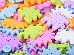 Blokai prieinami daugeliu spalvų, tokių kaip mėlyna, žalia, rožinė, oranžinė ir balta, kas skatina vaikų kūrybiškumą ir erdvinius gebėjimus.