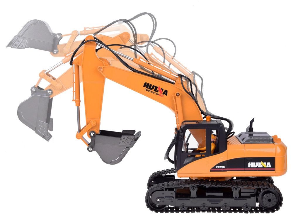 Kabina sukasi 585°, strėlė ir auslagas turi pilną judesių diapazoną, o kaušas atsidaro ir užsidaro. Puikiai tinka tikro ekskavatoriaus darbo imitacijai.