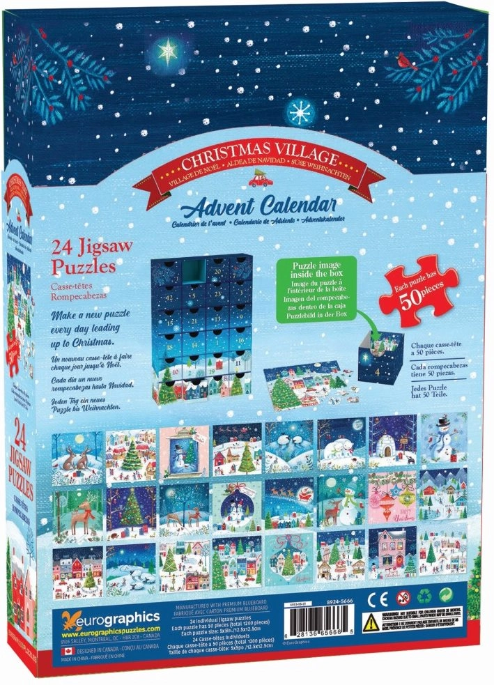 „Eurographics“ advento kalendorius suteikia užburiantį kalėdinį patyrimą su 24 skirtingais dėlionių paveikslėliais, kiekvienas su kalėdinių šunų motyvu. Kiekviena dėlionė turi 50 detalių ir matmenis 12,5 x 12,5 cm – tai puikus kasdienis advento iššūkis.