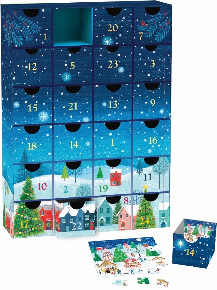 Kalendoriuje yra 24 stalčiukai, kuriuos galima naudoti pakartotinai. Kiekviename stalčiuke rasite ne tik dėlionę, bet ir dėliojimo pavyzdį, todėl tai puikus advento kalendorius ir kitam metams – jį galėsite pripildyti savo staigmenomis ar saldumynais.