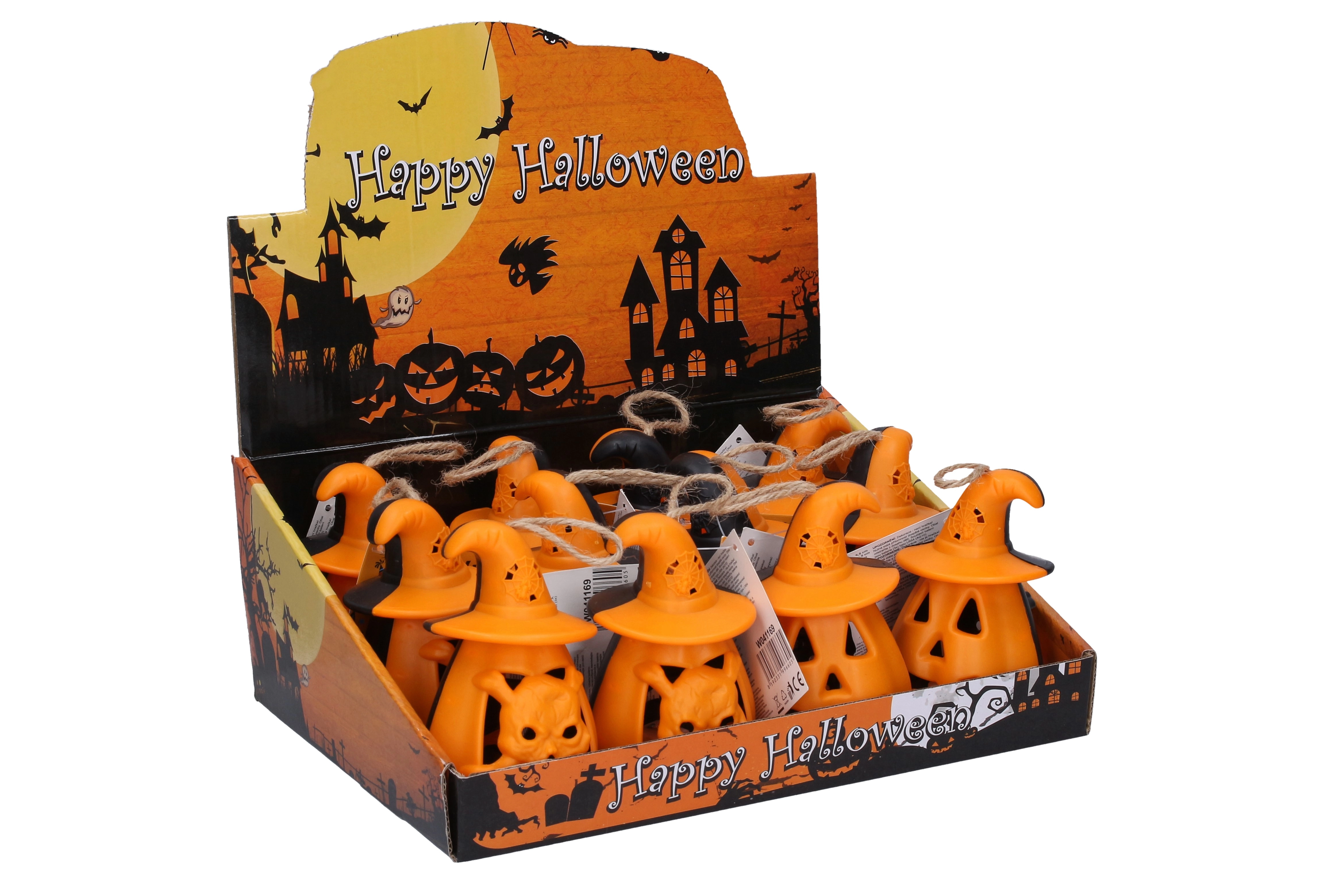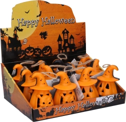 Sukurkite tikrą šiurpią atmosferą su šia kompaktiška dekoracija – šviečiančiu helovino moliūgu, kurio matmenys 11 × 6,5 cm. Idealiai tinka ant stalo, palangės ar vaikų kambaryje, paruoštas naudoti, nes rinkinyje yra 3× LR54 (AG10) baterijos.