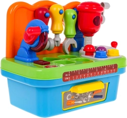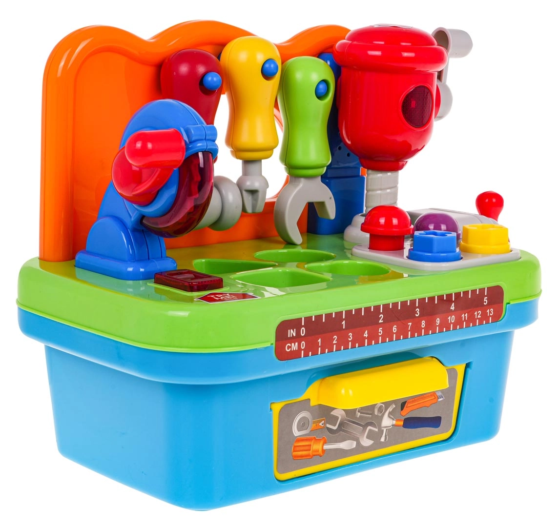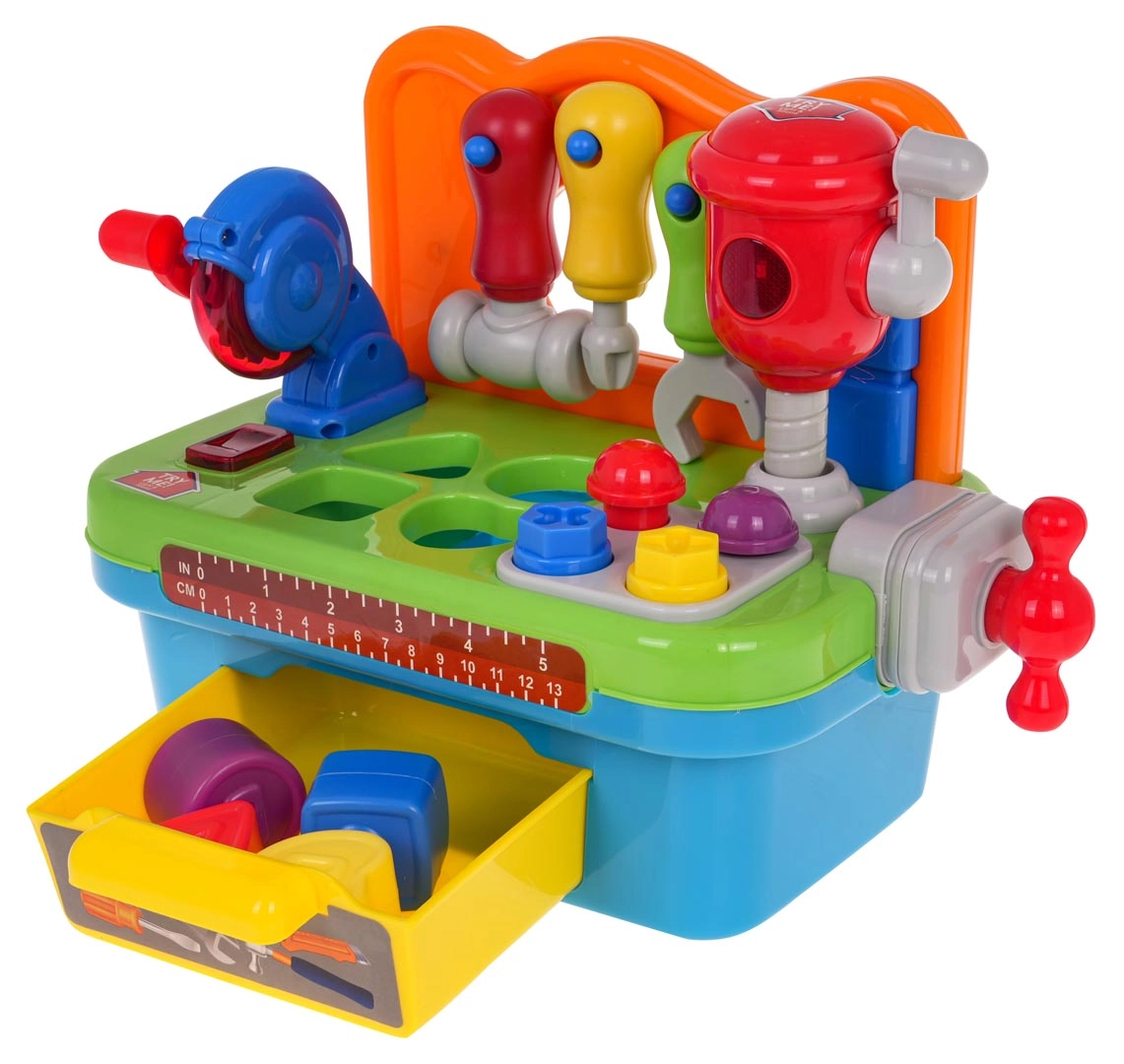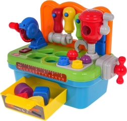 Šios daugiafunkcės interaktyvios dirbtuvės puikiai tinka mažiesiems meistrams. Skatina motorinių įgūdžių raidą ir skatina aktyvų žaidimą. Dirbtuvėse yra įvairių įrankių, pritaikytų mažoms vaikų rankoms, tokių kaip atsuktuvas, raktas ir plaktukas, kuriuos galima pakabinti ant lentynėlės. Ant darbastalio rasite diskinį pjūklą su realistiškais garso ir šviesos efektais, taip pat judantį smūkinį plaktuką.