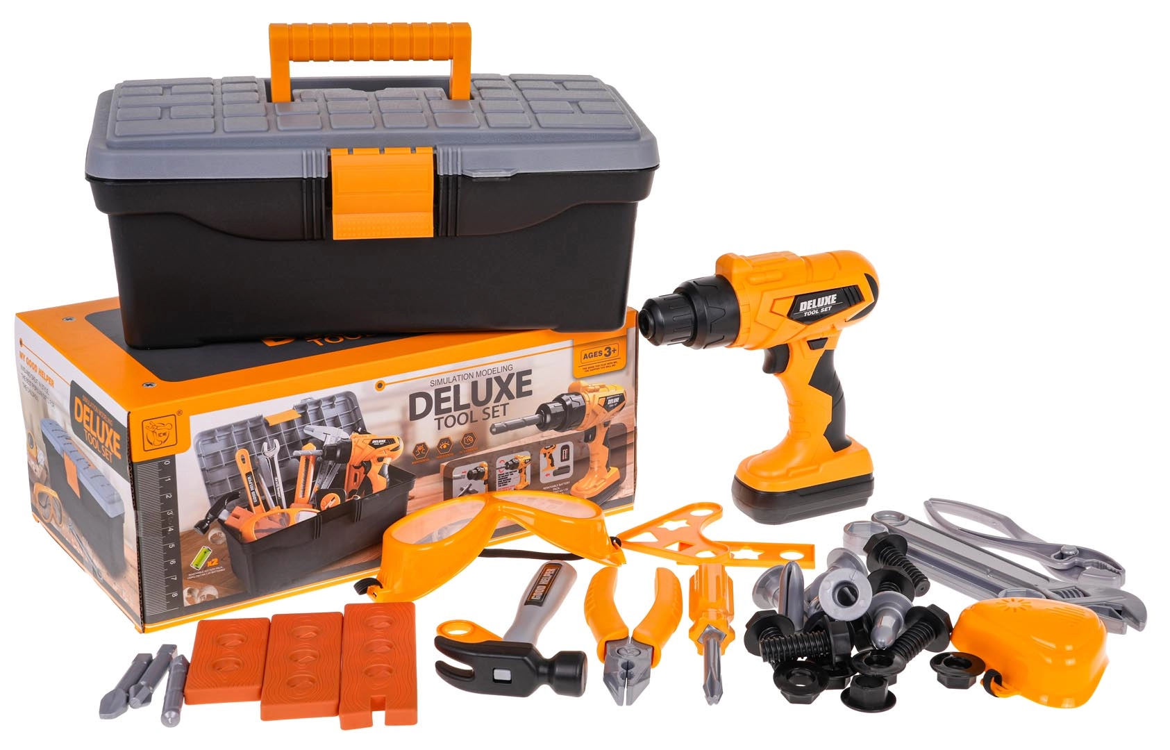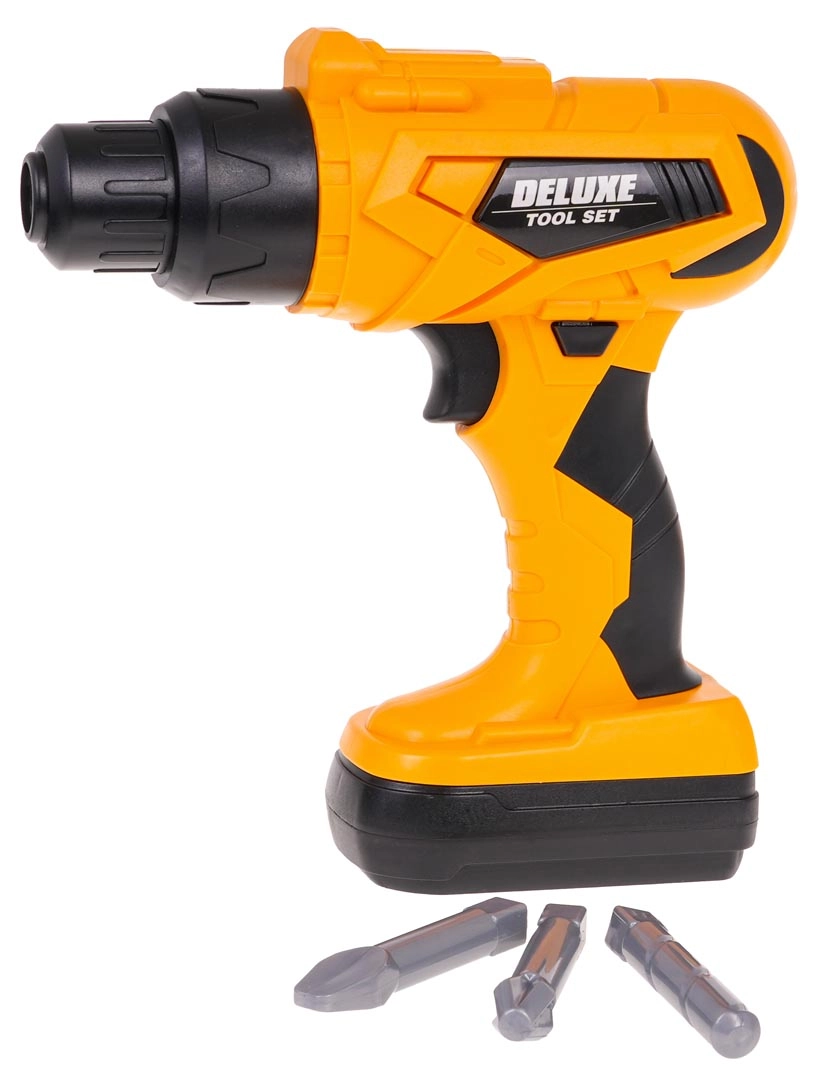 Realistiškas gręžtuvas suka ir atsuka varžtus, skleidžia garsus, turi keičiamas galvutes (plokščia, kryžminė, grąžtas) ir nuimamą „akumuliatorių“. Maitinimas: 2× AA 1,5 V (nepridedama).