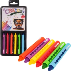 Spalvingi ir saugūs veido bei kūno pieštukai, 6 atspalvių rinkinys, puikiai tinka karnavalams, vakarėliams ir vaikų žaidimams. Pagaminti iš netoksiškų medžiagų, hipoalergiški ir lengvai nuplaunami vandeniu ir muilu. Tinka vaikams nuo 3 metų.
