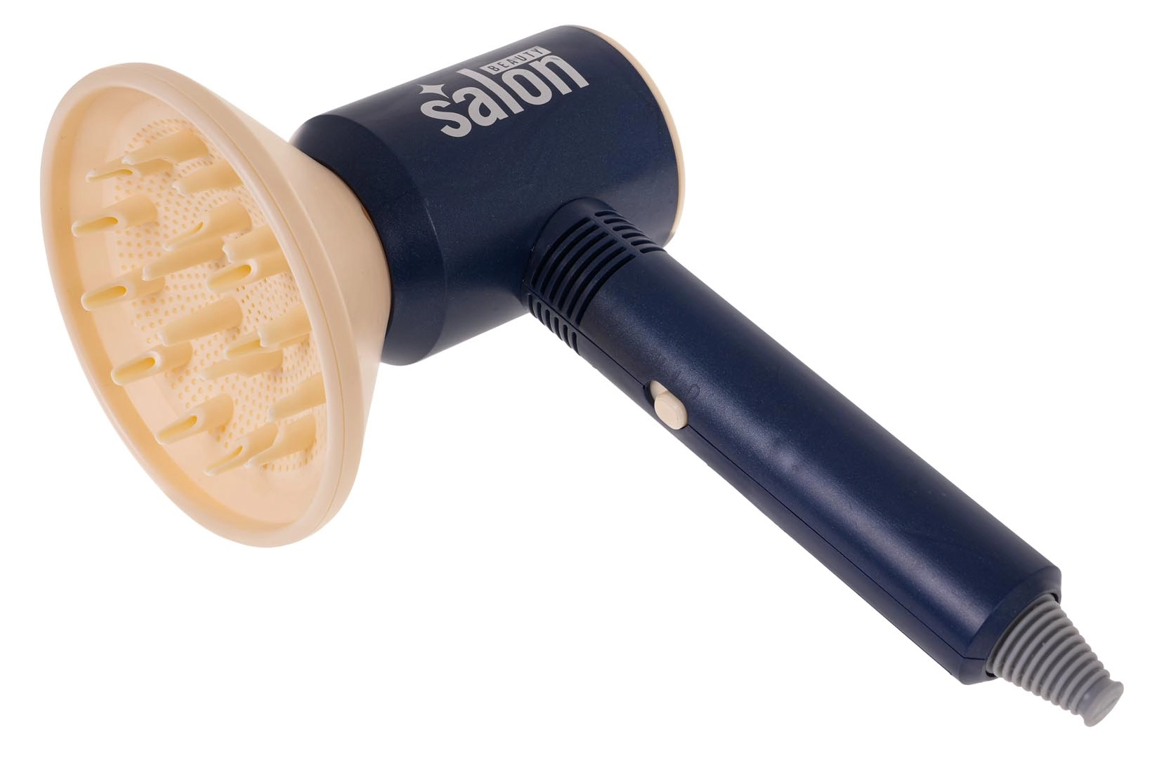 Vaikiškas baterijomis maitinamas džiovintuvas iš tiesų pučia, turi dviejų pakopų reguliavimą, o rinkinyje rasite difuzorių ir koncentruojantį antgalį tiksliam formavimui.