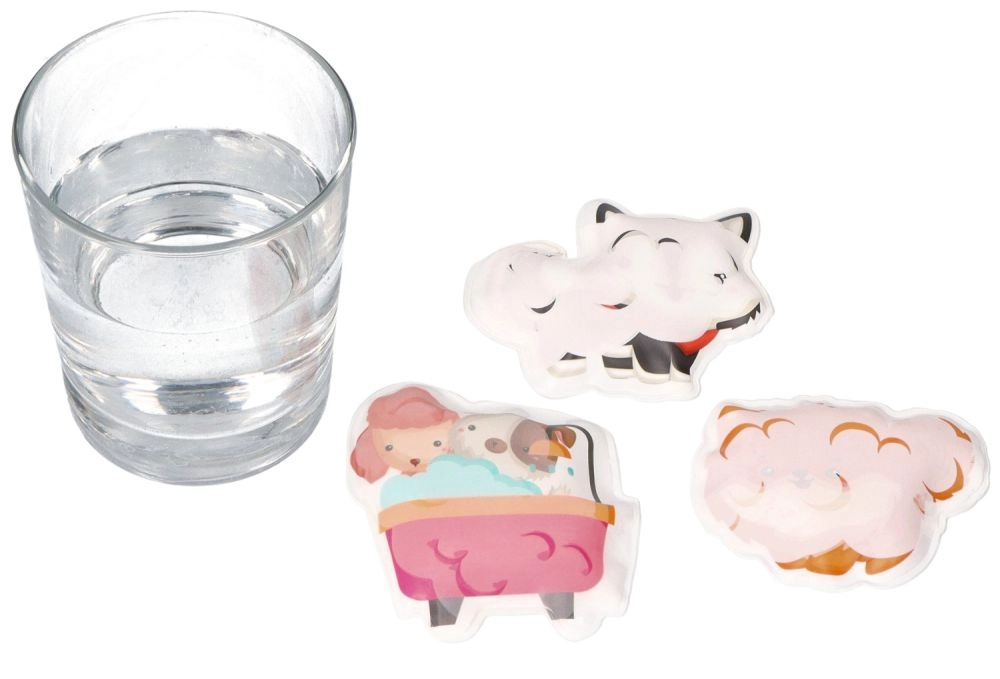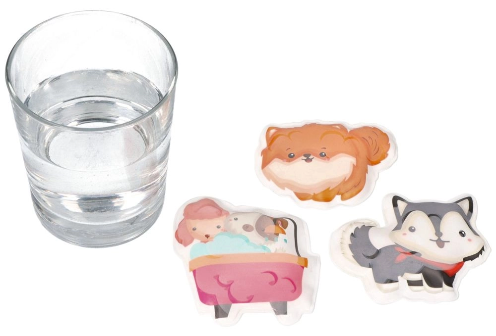 Atraskite maudynių džiaugsmą su mielais gyvūnėliais, kurie sušlapę keičia spalvą. Vaikai gali kurti savo istorijas, klijuoti lipdukus ant šlapių plytelių ir kartu lavinti smulkiąją motoriką, spalvų bei formų pažinimą.