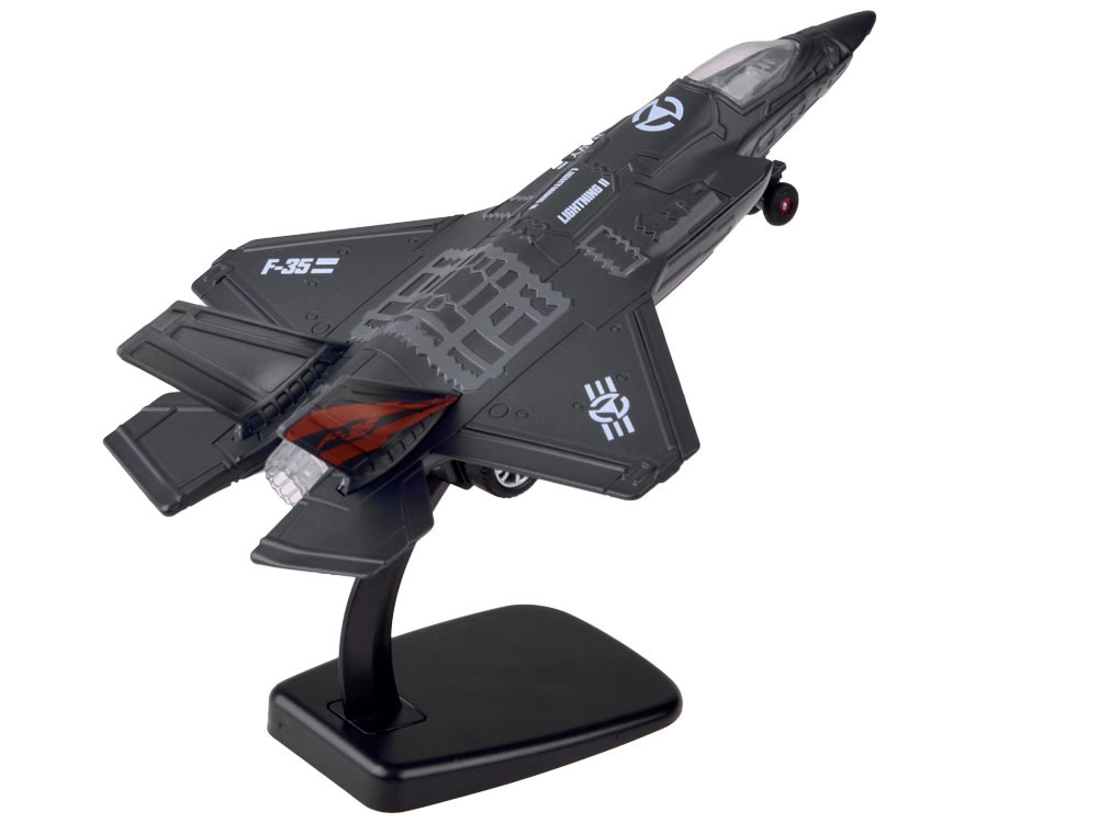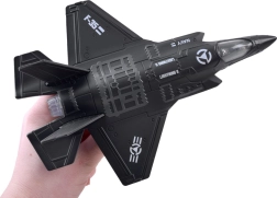 Atraskite detalų metalinį karinio lėktuvo F-25 modelį, kuris sujungia patvarų atlikimą su patraukliomis funkcijomis vaikams nuo 3 metų. Patraukus atgal, dėl pull-back mechanizmo jis nurieda pirmyn. Prispaudus prie pagrindo suaktyvėja variklio ir šaudymo garsai, o kabinoje įsijungia LED apšvietimas, kas didina žaidimo realistiškumą.