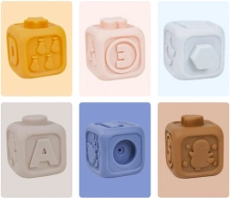 Kiekvienas kubelis pažymėtas raidėmis, skaičiais ir kitais raštais, todėl vaikai žaismingai susipažįsta su juos supančiu pasauliu ir lavina savo loginį mąstymą bei koordinaciją.