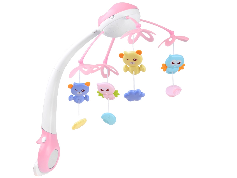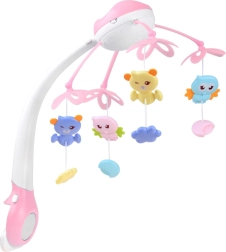 Muzikinė karuselė su žvaigždžių projektoriumi ir nuotolinio valdymo pultu lovytei – Rožinė