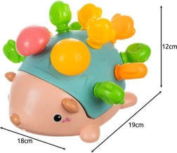 Ežiuko paviršius sujungia įvairias tekstūras (glotnias, išgaubtas, su skylutėmis), kurios stimuliuoja lytėjimą ir skatina pažintinius gebėjimus. Aukštos kokybės ABS yra patvarus ir saugus, neturi kenksmingų medžiagų ir lengvai valomas.
