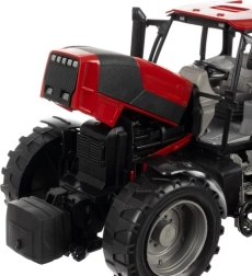 Šis tvirtas traktorius su priekaba puikiai tinka įsivaizduojamiems ūkio žaidimams. Dėl preciziškai sukurtos kabinos, interjero detalių ir vairuojamos priekinės ašies jis atrodo maksimaliai tikroviškai. Atidaromas variklio dangtis ir stogo langas sustiprina žaidimo įspūdį – vaikai gali „tikrinti“ variklį ir atlikti „aptarnavimą“.