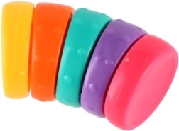 Šis žaislas suteikia subtilaus džiaugsmo per jutiminę veiklą. Žiedus galima sukti į abi puses, todėl juos patogu valdyti viena arba abiem rankomis. Taip vaikai žaidžia ir kartu lavina savo gebėjimus.
