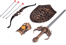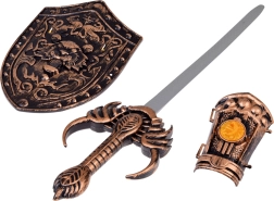 50 cm ilgio kardas ir 29 x 20 cm dydžio skydas leidžia vaikams saugiai kovoti su įsivaizduojamais priešais, gintis ir patirti kovines situacijas kaip tikri riteriai.