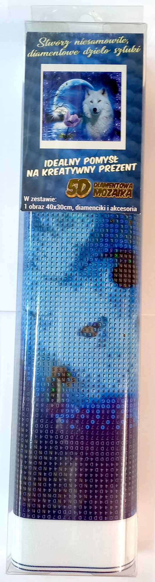 Rinkinyje yra viskas, ko reikia: 30 × 40 cm drobė, aplikatorius (pieštukas), spalvoti akmenėliai, lėkštelės ir vaško įdėklas. Baigtą paveikslą galite lengvai įrėminti (rėmelis nepridedamas) ir sukurti įspūdingą dekoraciją arba originalią dovaną.