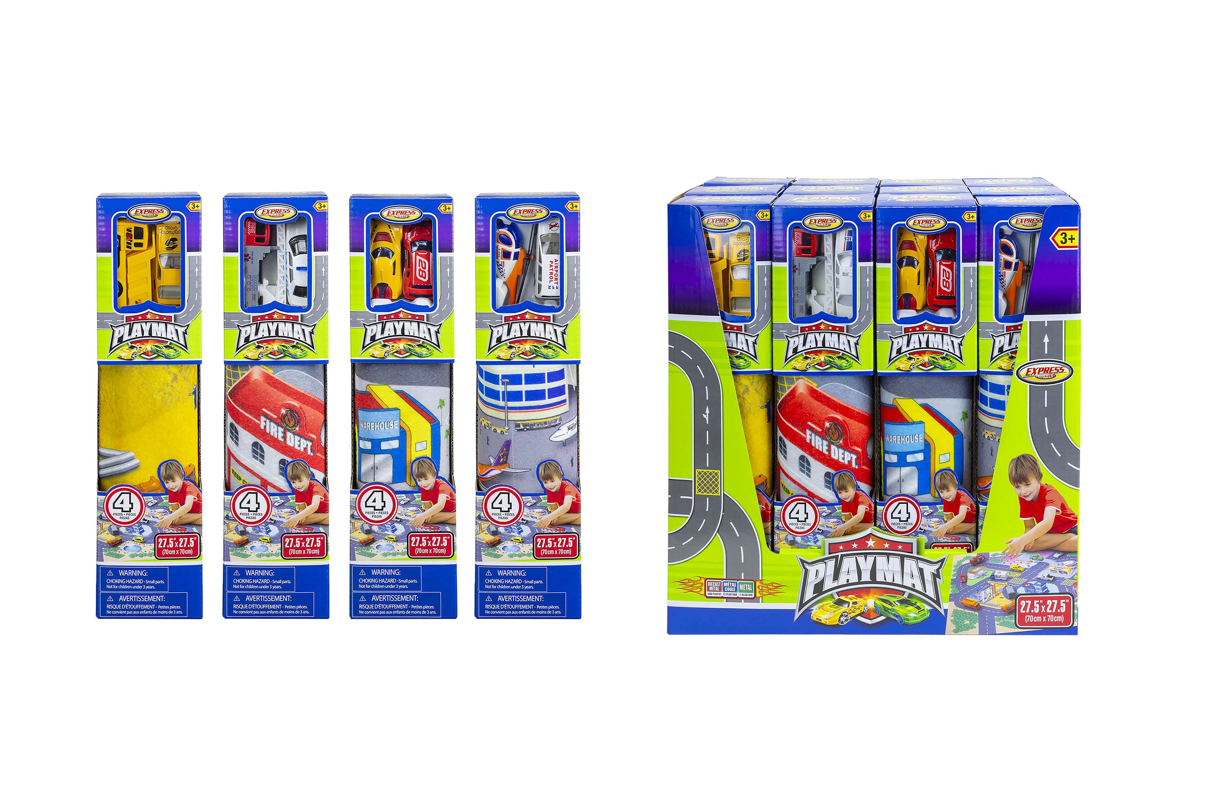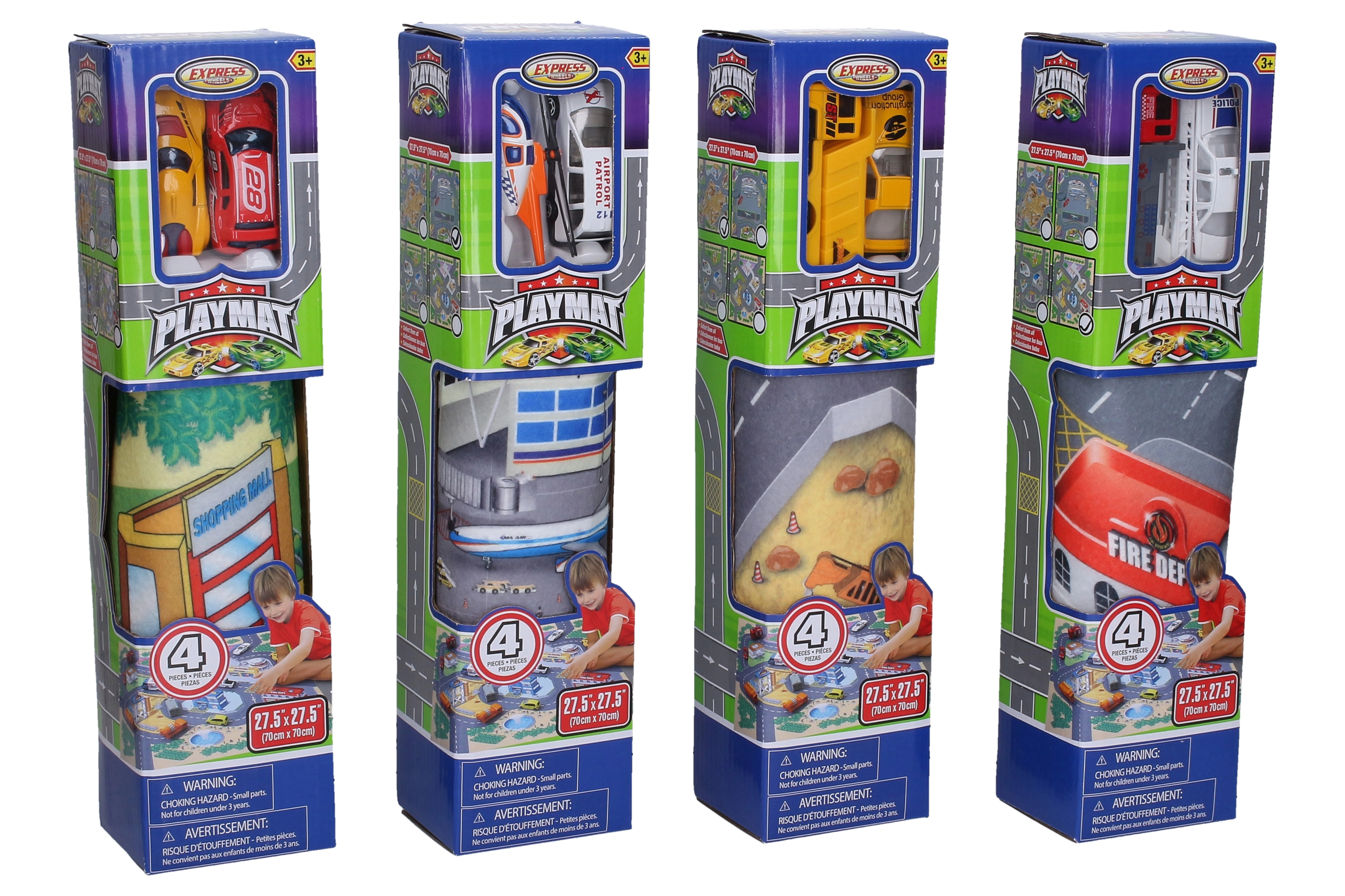 Rinkitės iš 4 skirtingų motyvų, kurie skatina kūrybinį žaidimą ir eismo situacijų pažinimą: gelbėjimo tarnybos, oro uostas, statybos ir lenktynės. Kiekvienoje pakuotėje yra 2 metalinės transporto priemonės, puikiai derančios prie pasirinkto žemėlapio.