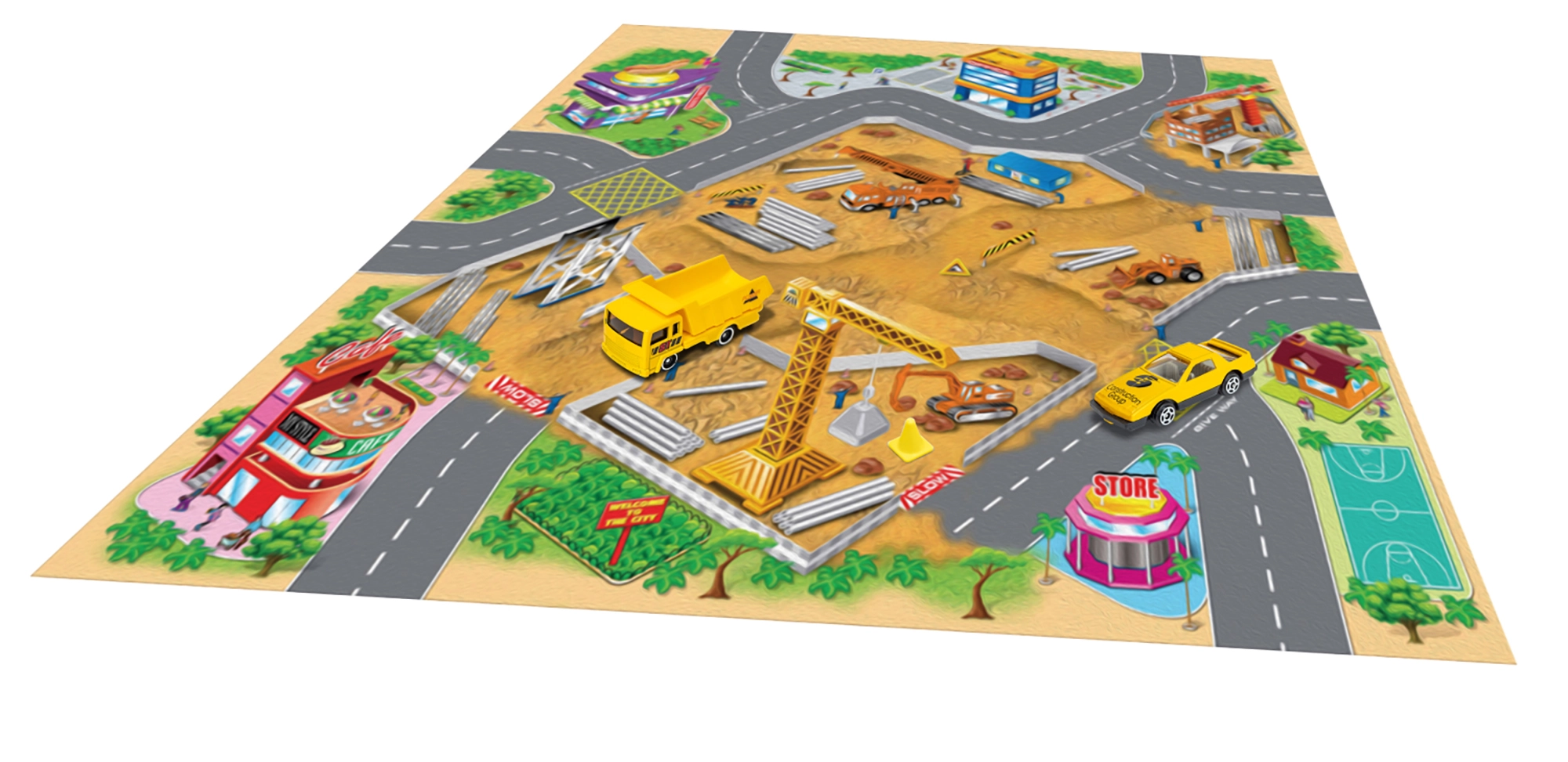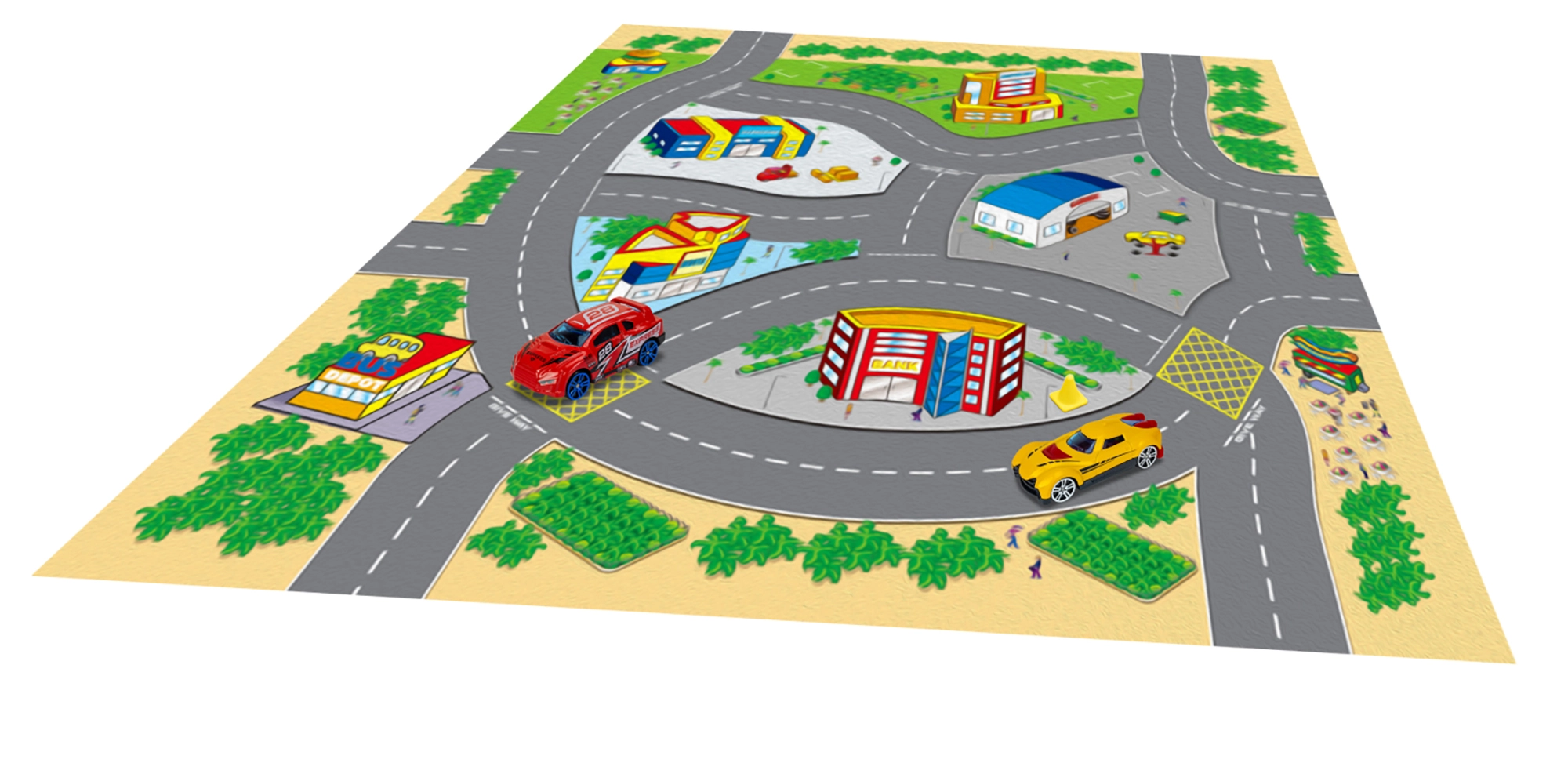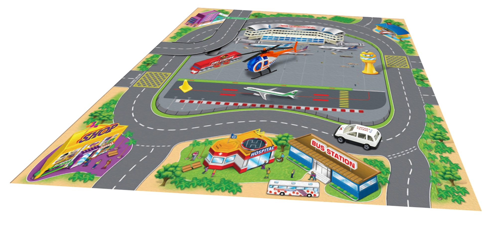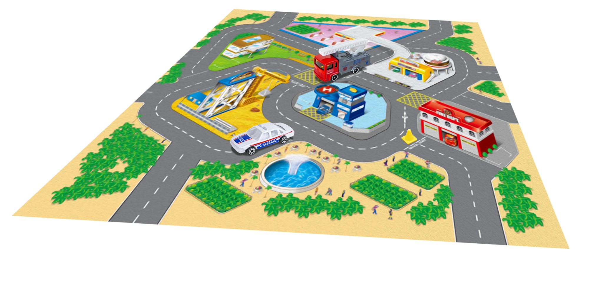 Šis žaidimų žemėlapis suteikia vaikams spalvingą pasakojimų ir nuotykių pasaulį. Tekstilinis paviršius malonus liesti, lengvai sulankstomas ir tvarkomas, o metalinių transporto priemonių atsparumas ir realistiškas dizainas žavi savo kokybe. Dėl kompaktiškų matmenų rinkinys idealiai tinka namams, darželiui ar išvykoms.