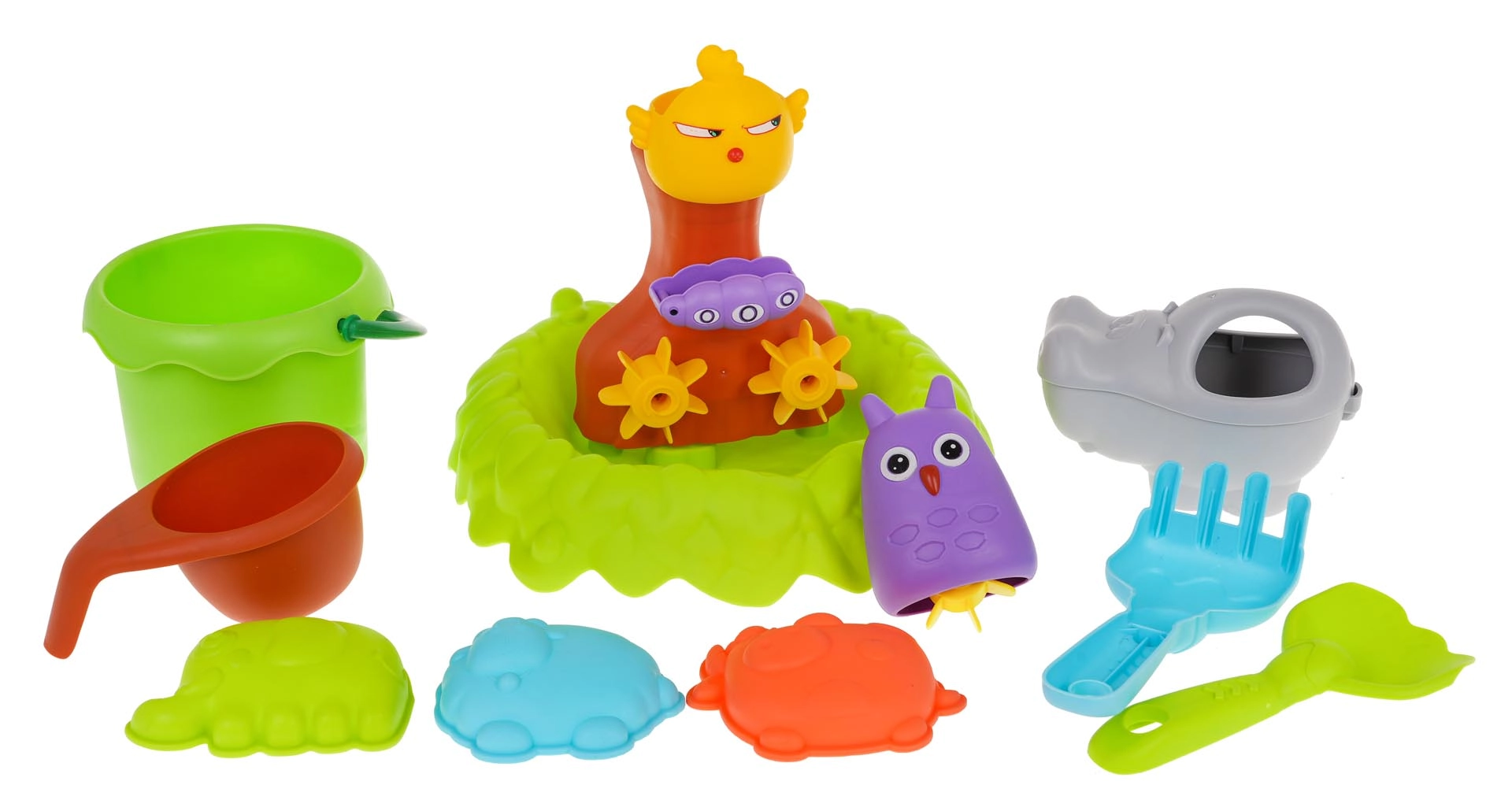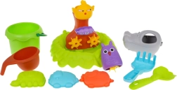 Kibirėlis, laistytuvė, piltuvėlis, kastuvėlis, grėbliukai ir 3 formelės praplečia žaidimo galimybes tiek smėlyje, tiek vandenyje.