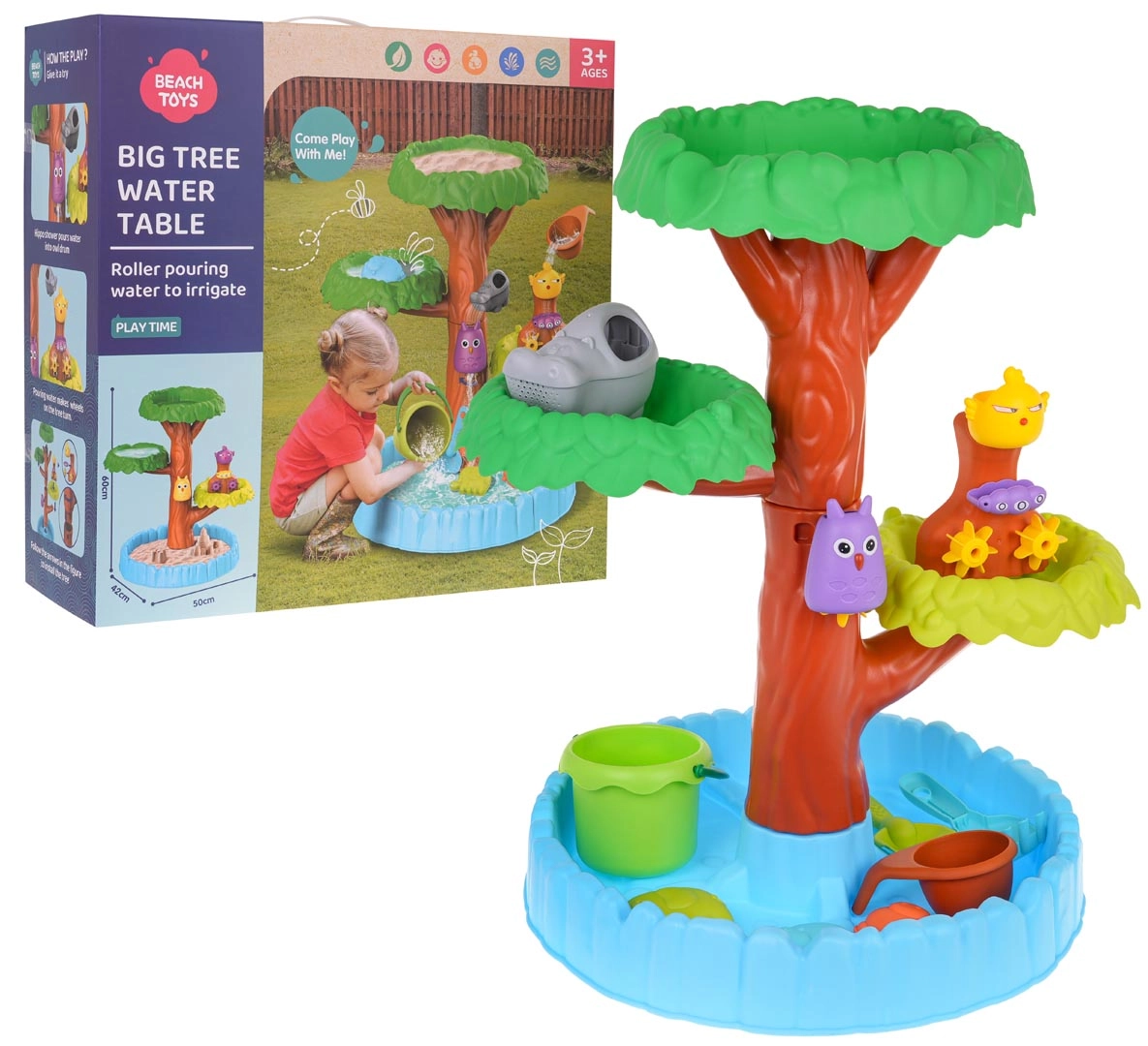 Pilkite vandenį į viršutinius „medžio“ aukštus ir stebėkite, kaip jis teka per atskirus lygius, suka dantračius ir galiausiai subėga į apatinę talpą. Dėl ryškių spalvų ir sumanaus dizaino vaikai natūraliai lavina smulkiąją motoriką, loginį mąstymą ir vaizduotę – tiek žaisdami namų kieme, tiek paplūdimyje.