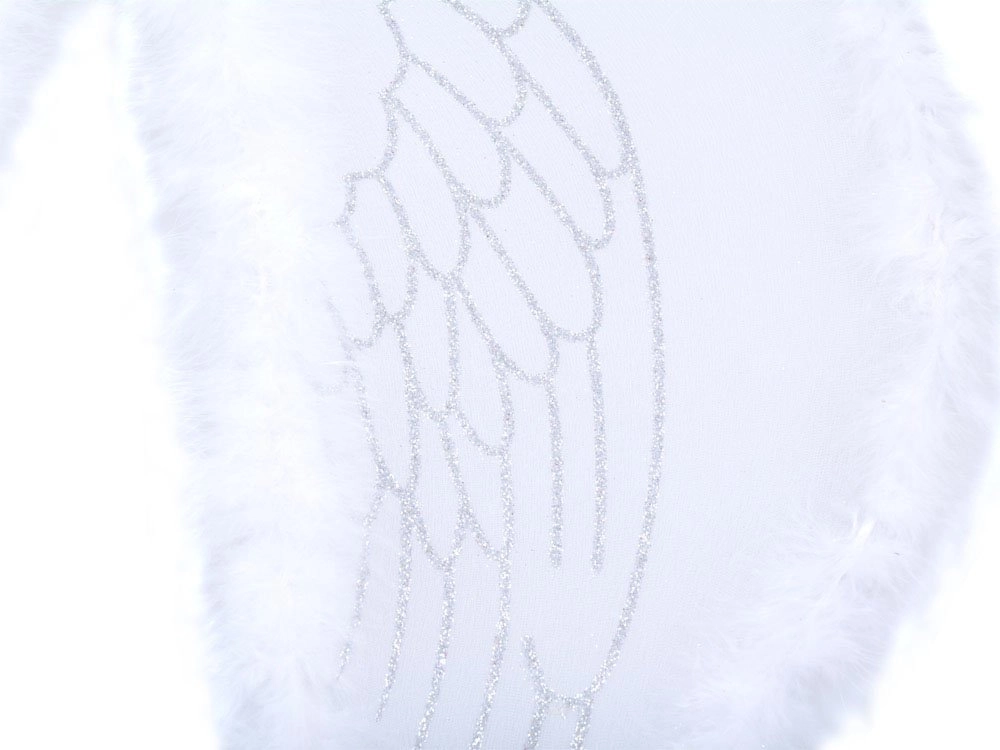 Balti sparnai su sidabriniais papuošimais ir pūkuotu apsiuvu suteikia magišką išvaizdą.