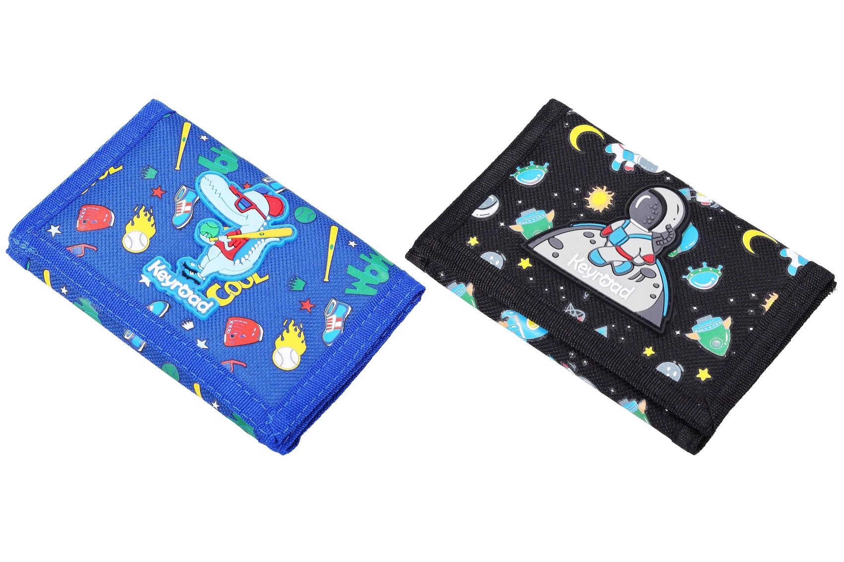Praktiška audinė piniginė su lipniu užsegimu, kompaktiško 12,5 × 8 cm dydžio, idealiai tinka vaikams ir moksleiviams. Galima rinktis iš 2 patrauklių motyvų – mėlyna su dinozauru ir juoda su astronautu. Piniginė lengva, patvari ir lengvai telpa į kišenę ar mokyklinę kuprinę.