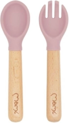 Minkštos silikoninės galvutės švelnios dantenoms ir dantukams, medinės rankenėlės patogiai laikosi vaiko rankoje. Puikiai tinka pirmiesiems savarankiško valgymo bandymams.
