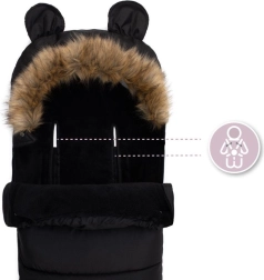 Šiltas žieminis vokelis MoMi Cozy elegantiškos juodos spalvos išlaikys jūsų kūdikį šilumą ir saugumą net žvarbiu oru. Dėl vandeniui atsparaus paviršiaus ir minkšto kailiuko pamušalo jis suteikia puikią šilumos izoliaciją, apsaugą nuo vėjo, lietaus ir sniego bei maksimalų komfortą pasivaikščiojimų metu. Universalios angos diržams leidžia greitai pritvirtinti vokelį į vežimėlį, automobilinę kėdutę ar rogutes, o mielas gobtuvas su ausytėmis suteikia vokeliui stiliaus ir žaismingumo.