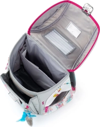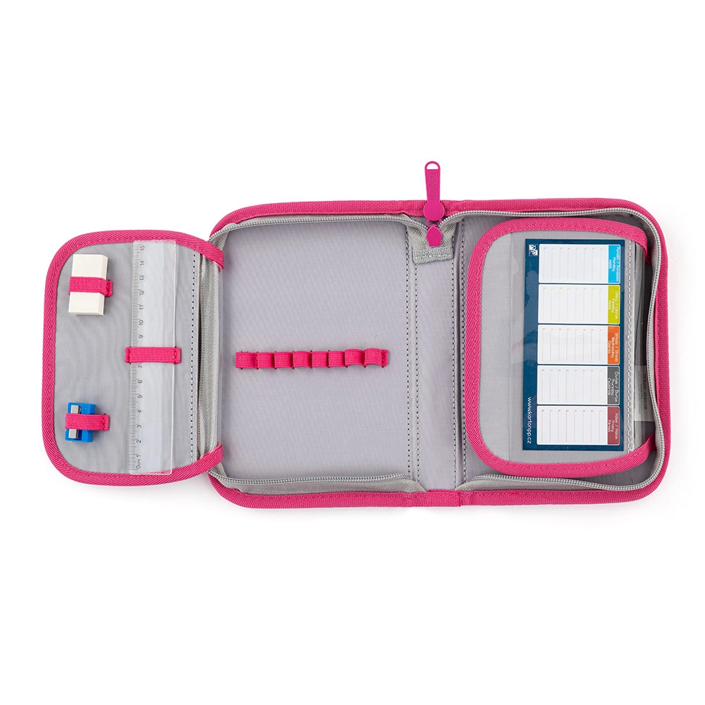 Apgalvotas suskirstymas suteikia pakankamai vietos vadovėliams, sąsiuviniams ir užkandžiams. Vidinis skirstytuvas, kelios kišenės ir užtrauktukais užsegamos dalys palaiko tvarką visą mokyklos dieną. Taip pat pridedamas praktiškas sportinis maišelis su sutraukiamomis virvelėmis ir vieno aukšto penalas su dviem atvartais ir guminėmis kilpelėmis.