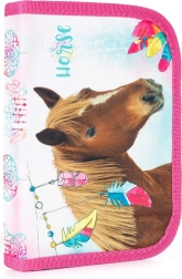Rinkinyje yra kuprinė su atšvaitais, sportinis maišelis su virvelių sutraukimu ir vieno aukšto penalas be užpildo – viskas derančiame dizaine su arkliu.