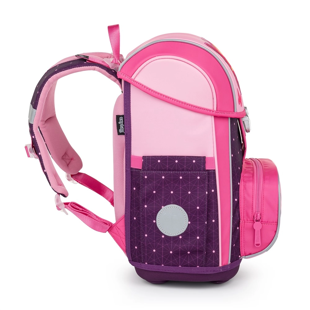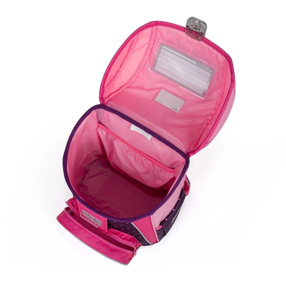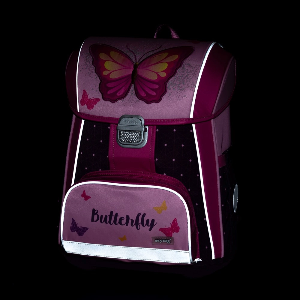 Lengva ir ergonomiškai suformuota mokyklinė kuprinė su drugių motyvu, skirta mergaitėms 1–2 klasėje. Ji turi sutvirtintą nugarėlę, plačias paminkštintas petnešas, tvirtą dugną ir saugos sagtį. Vienas erdvus skyrius talpina visus mokyklinius reikmenis, priekinė kišenė idealiai tinka užkandžiams. Atšvaitiniai elementai didina saugumą keliaujant į mokyklą. Tūris 28 l, keliamoji galia 8 kg, svoris tik 1,1 kg.