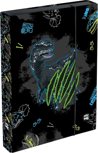 A4 Jumbo formato OXY GO Dino sąsiuvinių dėklas užtikrina puikią apsaugą ir mokyklinių reikmenų tvarką. Dėl tvirto laminuoto paviršiaus sąsiuviniai ir popieriai išlieka saugūs nuo pažeidimų.
