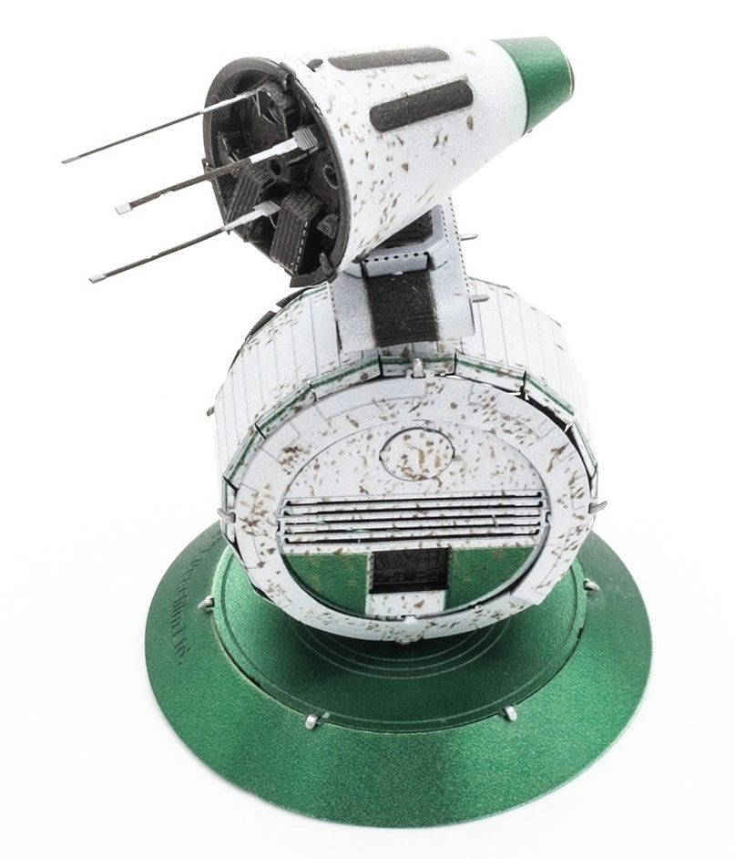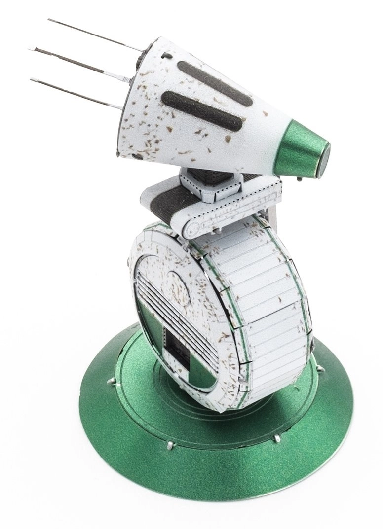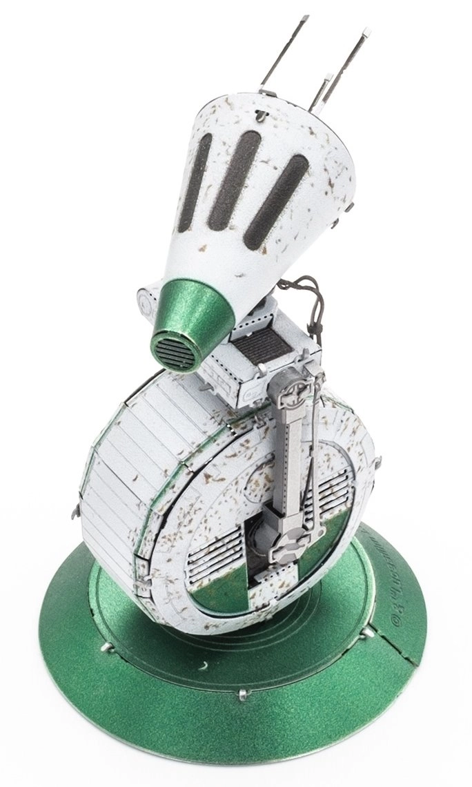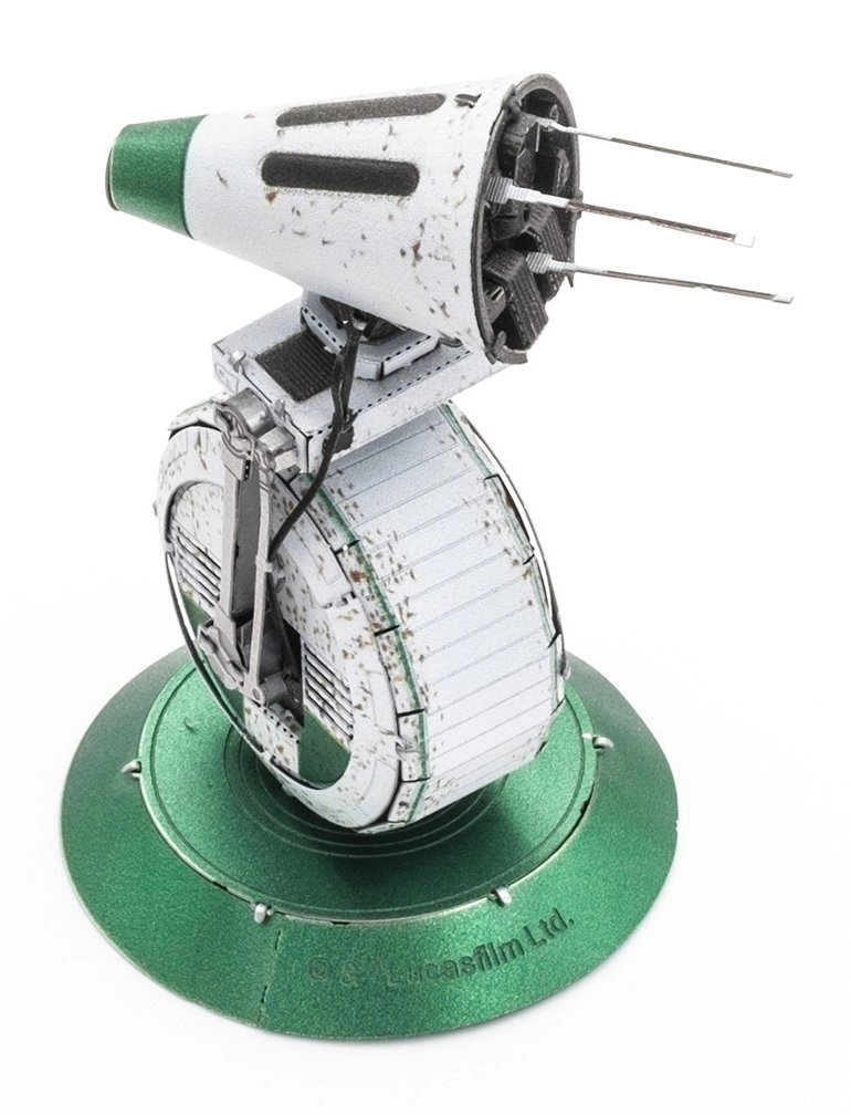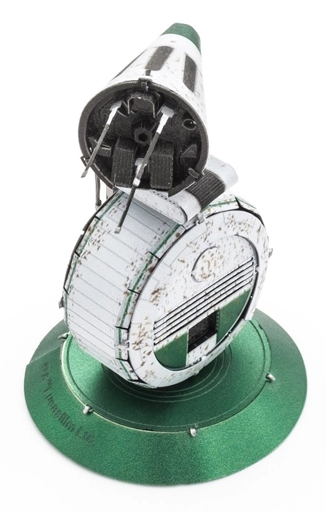 Smulkios linijos ir tekstūros, sukurtos lazeriniu graviravimu, suteikia modeliui gilumo ir realistišką išvaizdą. Surinktas droidas atrodo tarsi maža filmų rekvizitas.