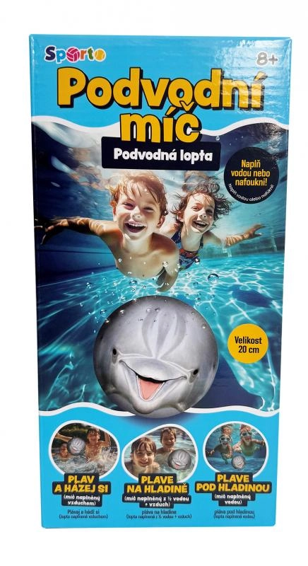 Povandeninis kamuolys SPORTO – delfinas yra puikus pasirinkimas baseinui, ežerui ir sodui. Dėl sumanios konstrukcijos jį galite pripildyti vandeniu, kad skęstų į dugną ir būtų idealus nardymo bei plaukimo įgūdžių treniruotėms, arba tiesiog pripūsti oru, kad plūduriuotų ir būtų paruoštas mėtimo bei vandens žaidimams.