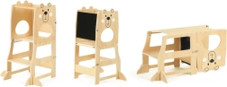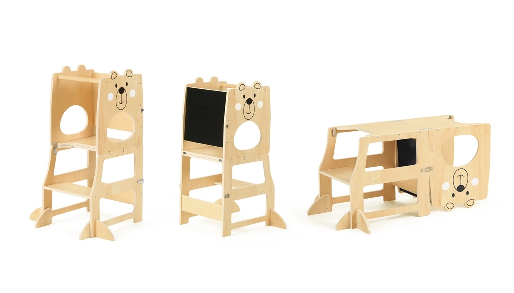 Mokomoji bokštas Meškiukas 3 viename siūlo daugiafunkcį naudojimą, leidžiantį vaikams tobulinti motorinius įgūdžius. Naudodamiesi šiuo bokštu, vaikai gali įgyti daugiau savarankiškumo atliekant įvairias veiklas. Linksmas dizainas ir tvirta konstrukcija iš FSC® sertifikuotos medienos užtikrina ne tik estetinį patrauklumą, bet ir ekologiškai atsakingą medžiagų pasirinkimą.
