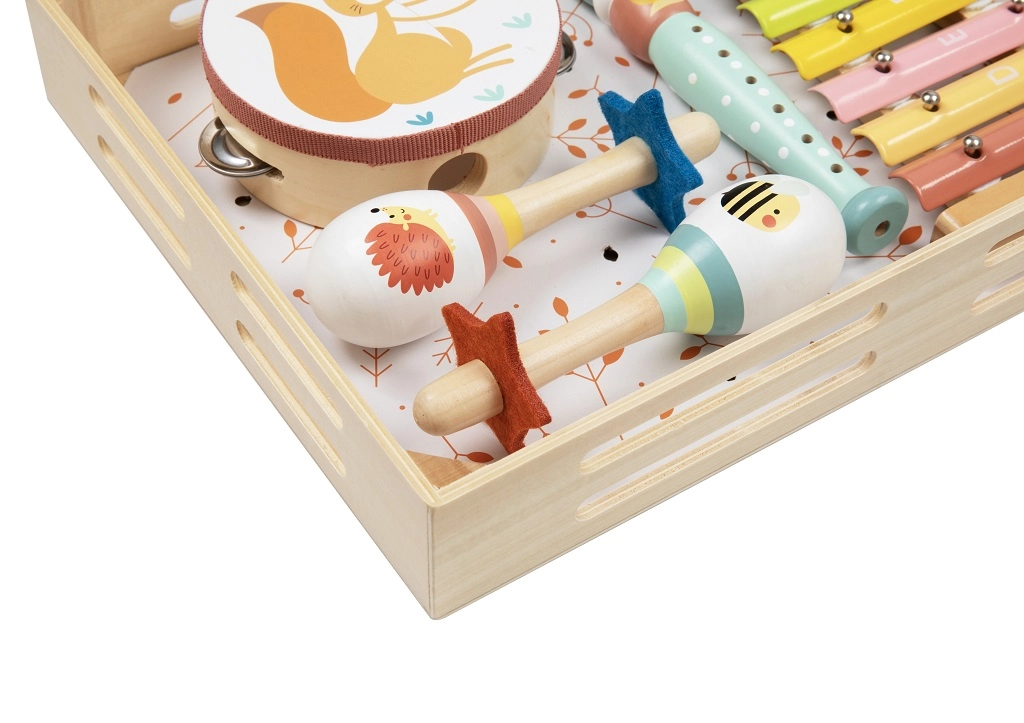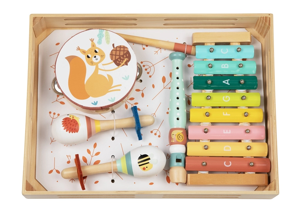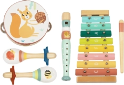 Rinkinyje rasite tokius instrumentus kaip tambūrinas, marakasai ir varpeliai, kurie sudomins vaikus ir paskatins saviraišką. Linksmas miško gyvūnėlių dizainas traukia vaikų dėmesį ir padeda geriau suprasti muziką.