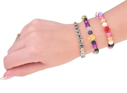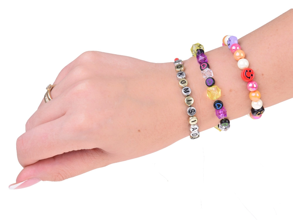 Plati atspalvių ir formų paletė, įskaitant raidinius karoliukus, leis kurti unikalius apyrankes, vėrinius ir pakabukus tiksliai pagal jūsų fantaziją.