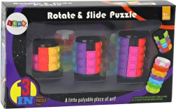 Susipažinkite su trijų loginių galvosūkių rinkiniu cilindro formos, kurie suteiks valandų pramogų ir protinių iššūkių. Spalvų išdėstymas vienoje eilėje sukant žiedus ir stumdant spalvotas kaladėles suteiks savitą džiaugsmą.
