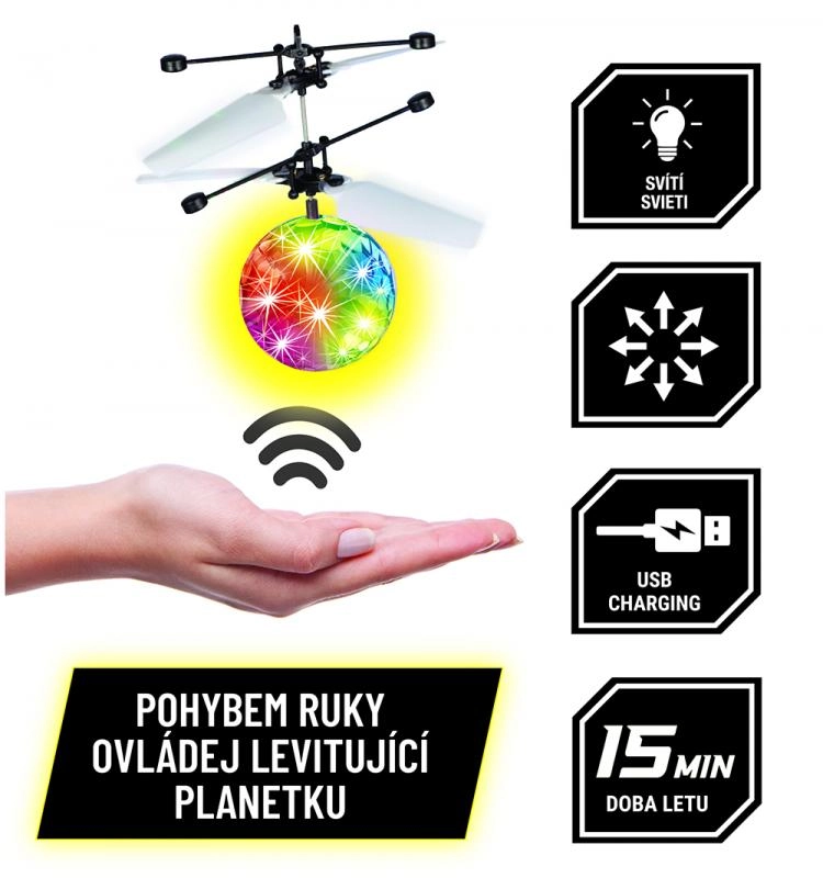 Pristatome jums levituojančią planetėlę DRIVERO, kuri dėka levitacijos technologijos gali laisvai sklandyti ore. Šis žaislas yra idealus kiekvienam, ieškančiam pramogos ir inovacijų viename. Nuotolinis valdymas leidžia nukreipti planetėlę visomis kryptimis ir kurti įspūdingus šviesos efektus, kurie nušviečia bet kurią erdvę.