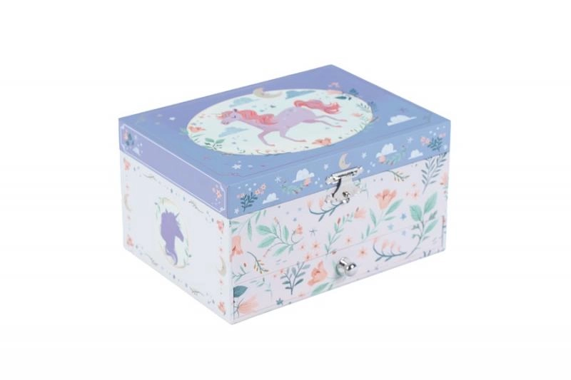 Muzikinė papuošalų dėžutė yra puiki dovana vaikams, kurie mėgsta stebuklingus ir originalius aksesuarus. Atidarius dėžutę, suskamba melodija, o kartu ima suktis nuostabus vienaragis.