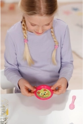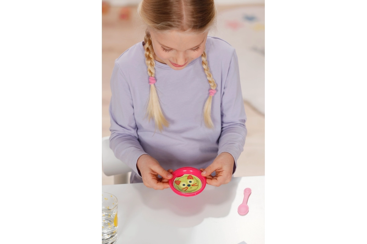 Į komplektą įeina ir stebuklinga lėkštutė, ant kurios, sušlapinus, atsiranda mėgstamas maistas, bei puodukas, kuriame „stebuklingai“ pasirodo šlapinimasis ar kakučio žymė – idealiai tinka kasdienės priežiūros ritualams lavinti. Gausi komplektacija ir persirengimo galimybės lavina vaikų vaizduotę, empatiją ir smulkiąją motoriką.