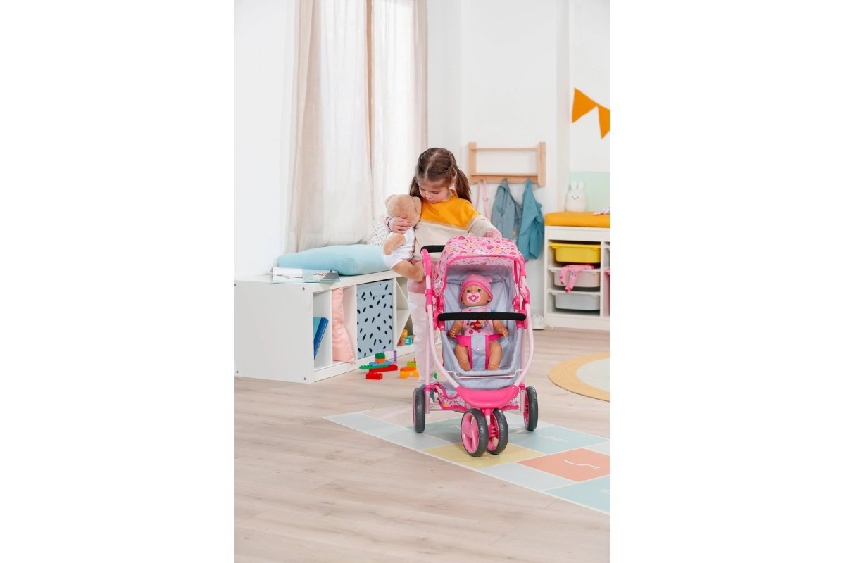 Gausi komplektacija, įskaitant buteliuką, čiulptuką, sauskelnes, lėkštutę, šaukštelį ir kitus priedus, skatina vaizduotę, persirengimą ir kasdienio gyvenimo scenarijus.